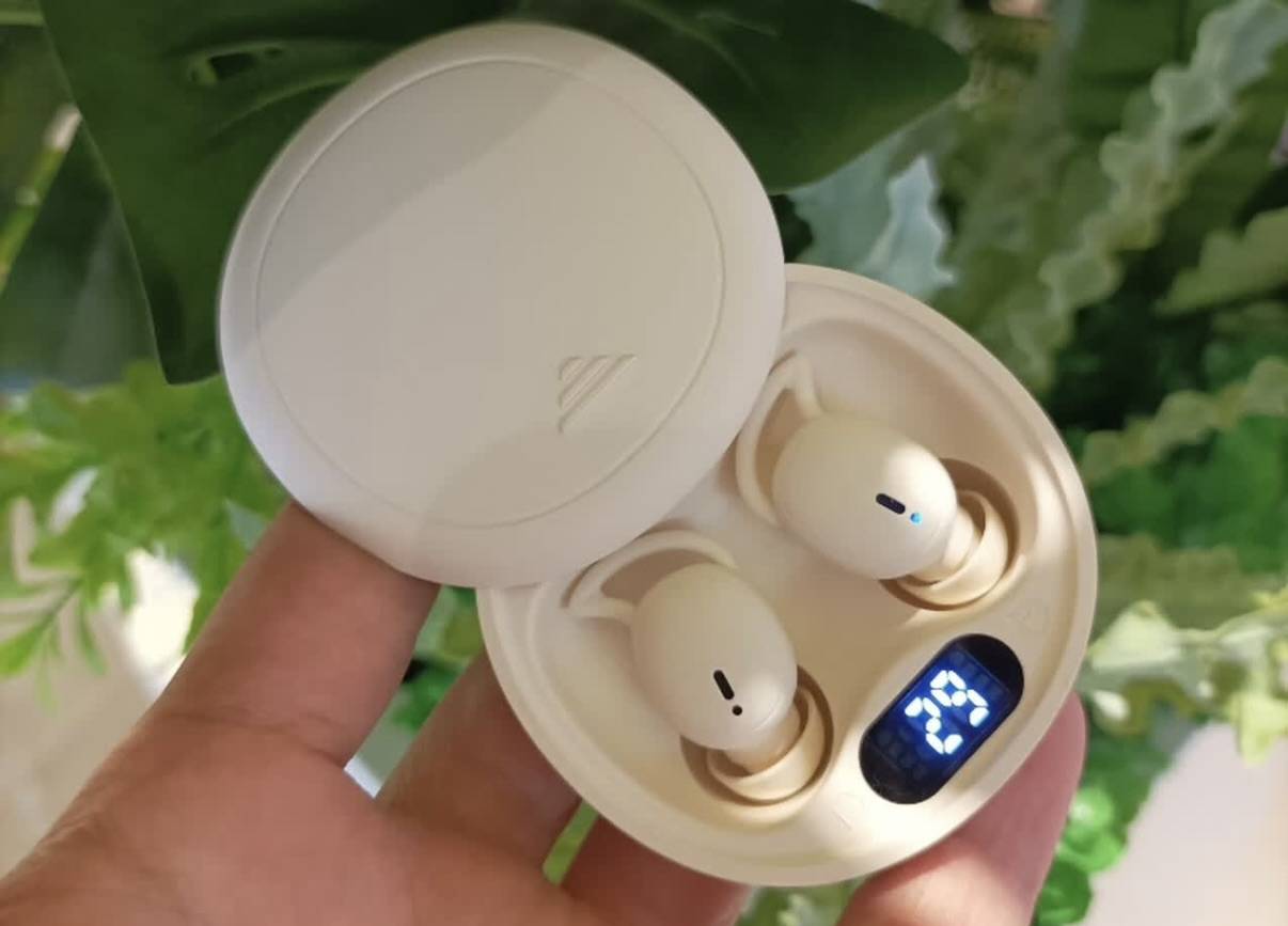蛇圣小悠以睡眠佩戴上,机身小巧如蚕豆,精致便携,单只仅3.3g,上耳后几乎感受不到负重,适配整夜佩戴。耳机弧边采用液态硅胶材质,亲肤细腻且无异味,触感柔软顺滑,能很好贴合耳部肌肤。独特的鲨鱼鳍设计,可牢牢贴合耳朵轮廓,增强佩戴稳定性,睡眠翻身、侧睡也不易脱落,11mm机身厚度,侧躺几乎不压耳。降噪上采用4麦ENC技术,能较好屏蔽外界各类干扰噪音,减少杂音影响,为睡眠营造相对安静的环境。