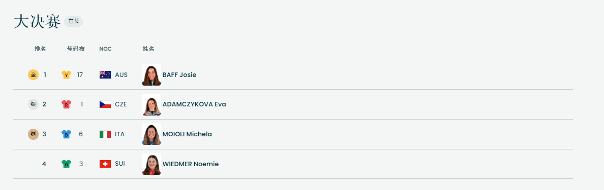 意大利选手米凯拉-莫约利获得铜牌,这是她继2018年平昌冬奥会夺金后,再度站上该项目领奖台。