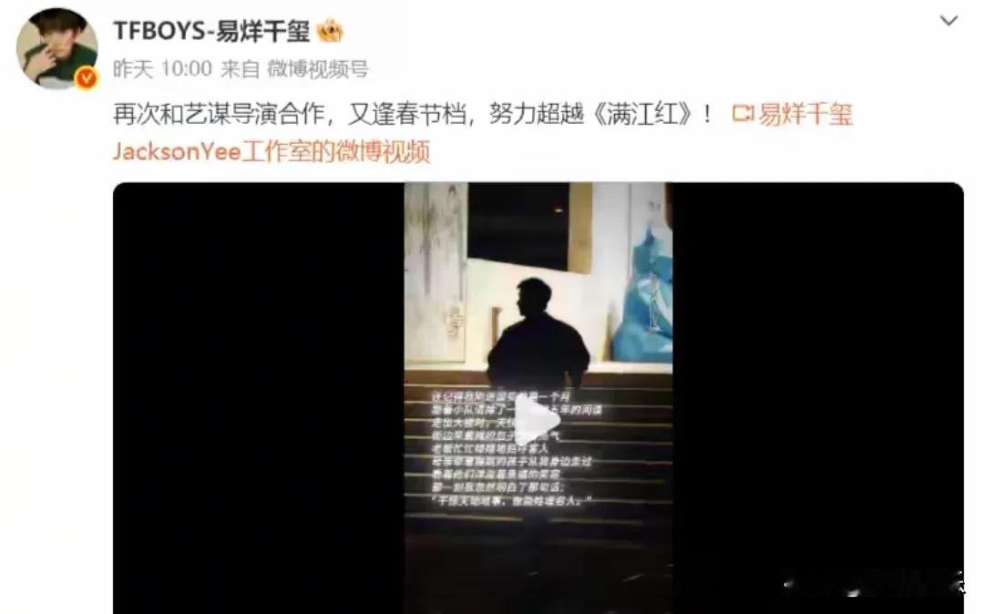 易烊千玺一句“努力超过《满江红》”,惹来不少议论。有人觉得他太敢说,毕竟《满江红》45亿的票房在那儿摆着。 但我倒觉得,这话听着特别实在。就像咱们打工的,谁不想今年业绩比去年好?他没说“一定能超”,说的是“努力超过”。这份坦诚,在娱乐圈里反而稀罕。 张艺谋导演都夸他,现在是他“最好的阶段”。为了新戏剃寸头、减重,泡在冷水里拍追捕戏,全是自己上。一个年轻演员,不靠流量说话,只想用作品证明自己,这份心气儿就值得点赞。 春节档就像个大考场,考生说句“我想考得比上次好”,咱们应该鼓励才对。能不能成看观众,但敢不敢想,看的是自己的志气。 有没有道理,咱们影院见分晓。