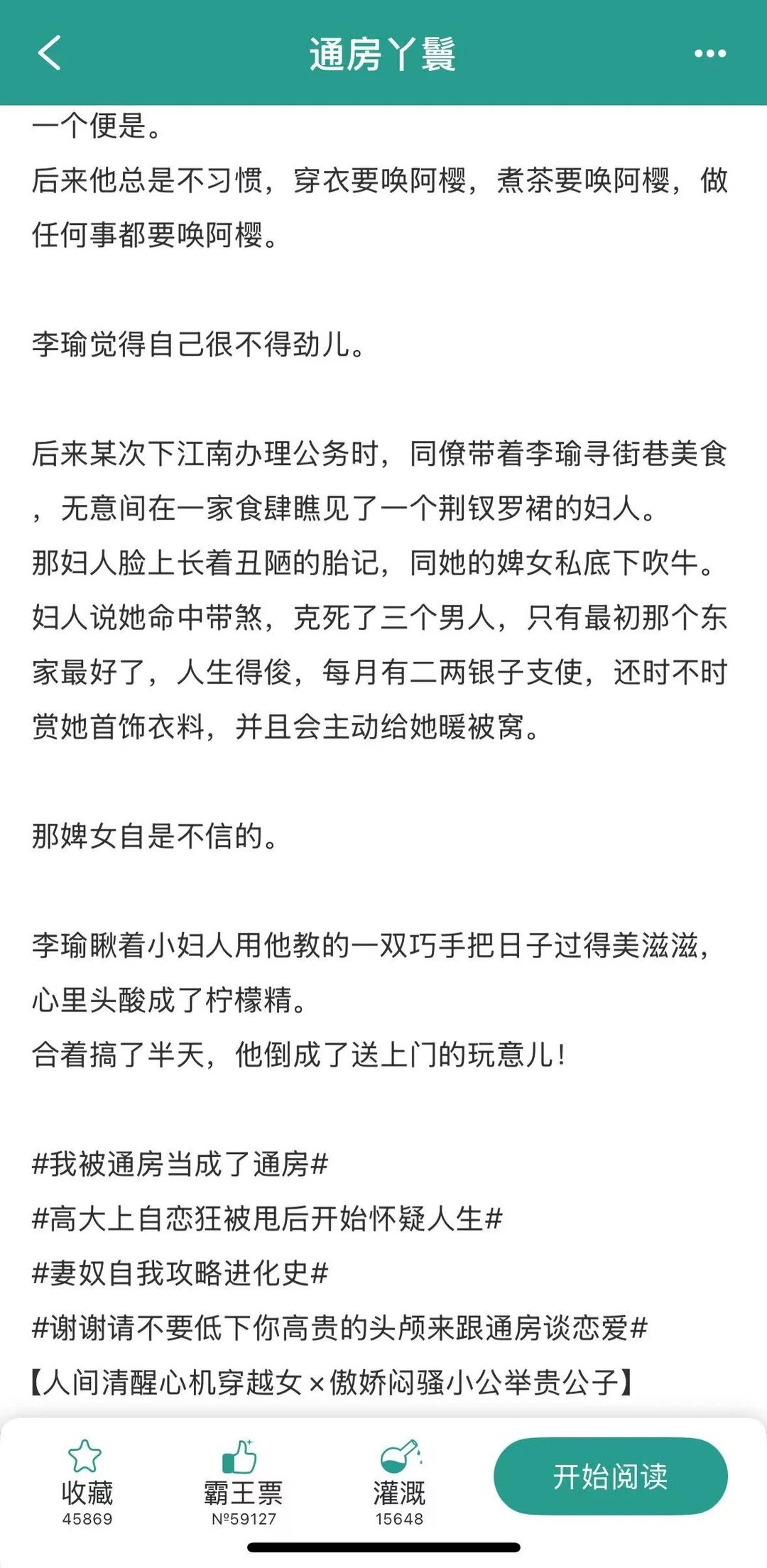 [樱花R]《通房丫鬟》by闫桔 [樱花R]清醒狡黠婢女 x 傲娇闷骚贵公子 [樱花R]古言/穿越/打脸/追妻/真香文学/训狗 [种草R]作者大大早些时候的文章了,原来叫《穿成通房后我跑了》篇幅不长,但写得还不错。在人物塑造方面,女性清醒狡黠,男主闷骚傲娇,两人的相处看似是男主处于上风,但其实男主完全被女主拿捏住了,还蛮搞笑的。