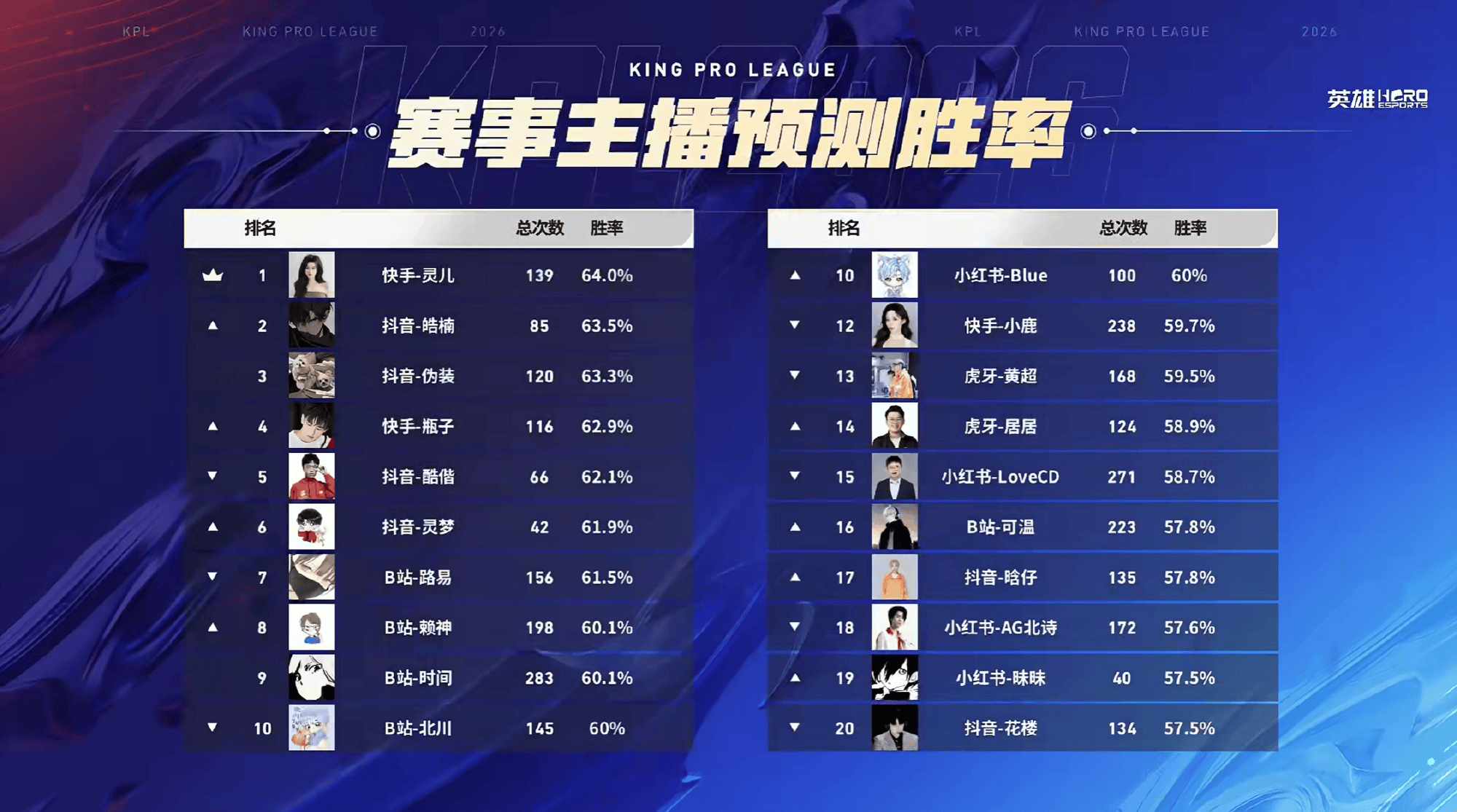 快手-灵儿胜率64.0%,位于排行榜第一。