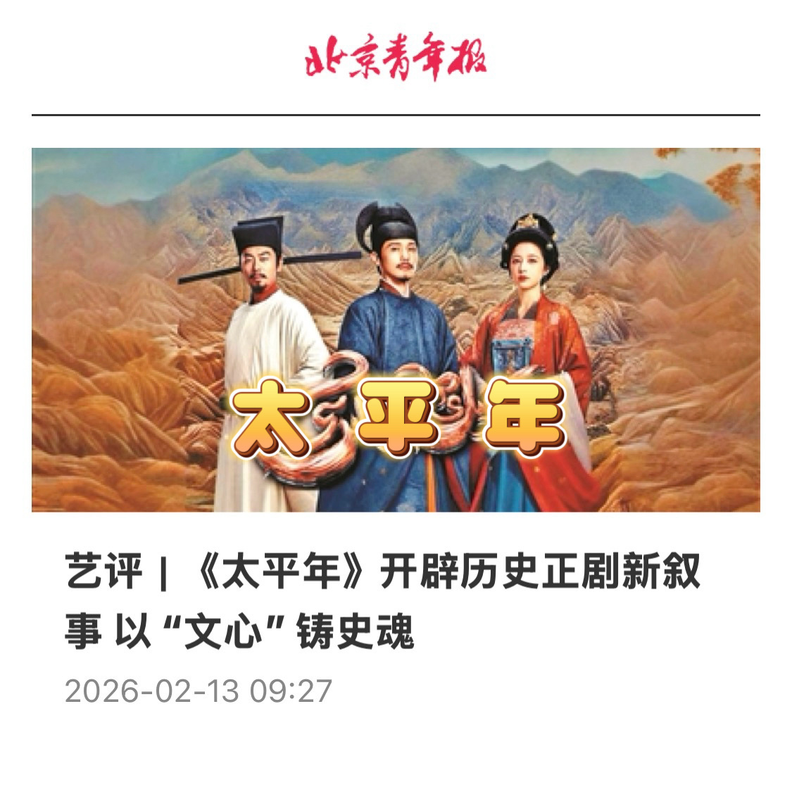 【艺评|《太平年》开辟历史正剧新叙事 以“文心”铸史魂】