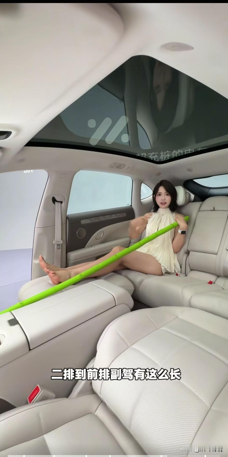 万万想不到智己LS6 空间居然这么大, 美女直接用竹子开始了丈量, 她可是车圈有名的美女解说, 应该说算是比较专业的了, 她上去之后将前排和后排都放倒, 拿出2m的竹竿儿开始了丈量, 直接给大家展示这辆车的内部空间, 确实非常的大, 这种车坐起来非常舒适, 所以采用了零重力太空座椅, 周围包的很严实, 并且后排还有小冰箱, 里面可以自由调节, 开着这辆车去郊游, 晚上直接可以住在车上, 欣赏着外面美好的风景, 自己的女友喝着饮料, 别提多开心了, 大家觉得美女介绍这辆车专业吗?