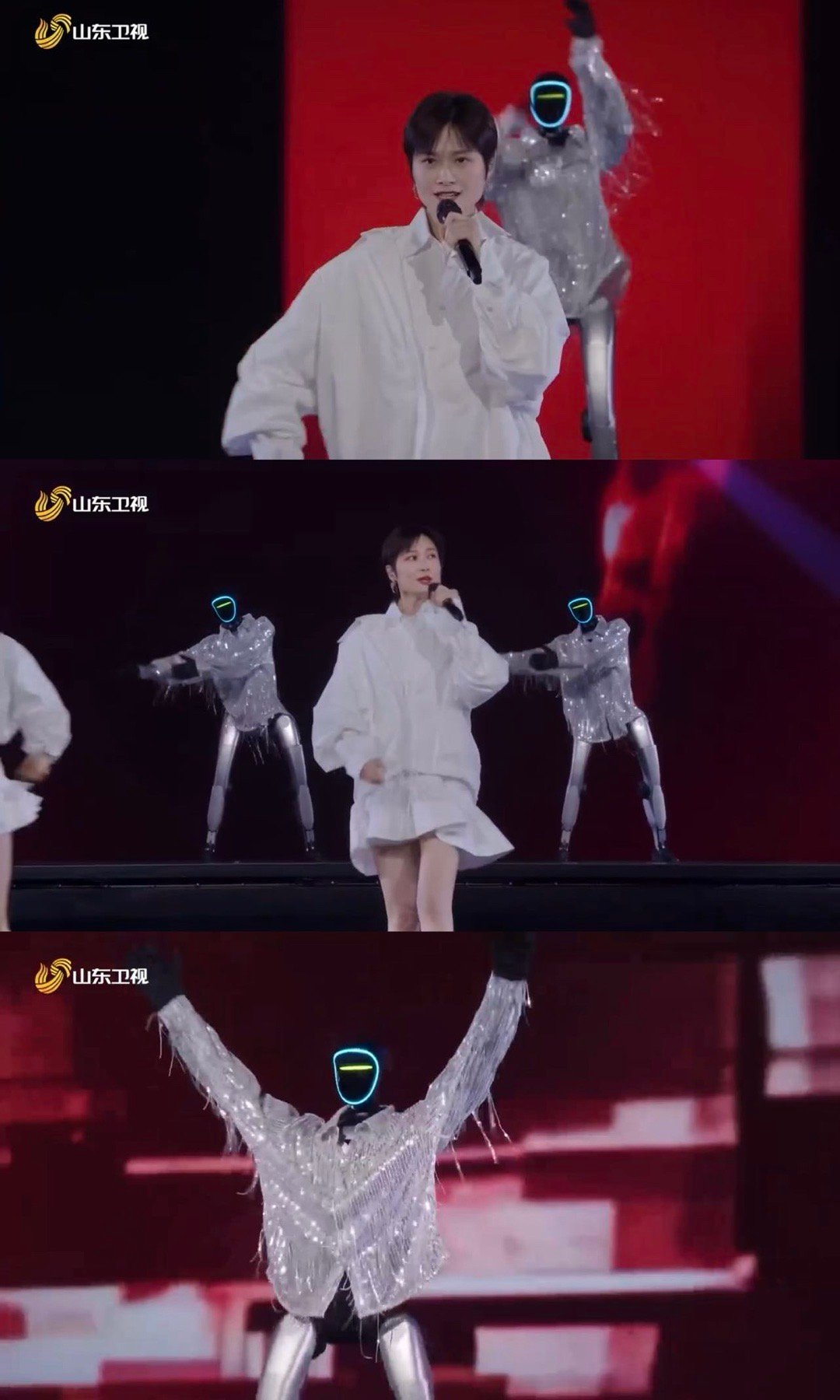 李宇春白裙和机器人跳无价之姐李宇春山东春晚名场面!白裙配机器人共舞《无价之姐》,柔美碰撞硬核科技,反差感拉满,唱跳有力又极具美感,太惊喜了