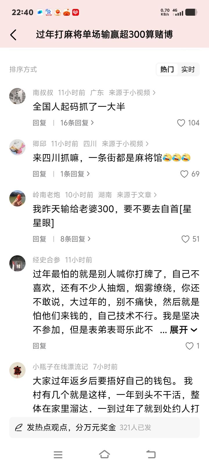 春节麻将桌成“雷区”?全国多地警方划出300元红线,已有家庭因“团圆局”变“派出所局”引热议! 春节的麻将声里,藏着多少家庭的欢笑与隐患?当亲友围坐牌桌,那张小小的四方桌竟成了法律与习俗的灰色地带。近日多地警方明确警示:单场输赢超300元可能被认定为赌博。这并非空穴来风,而是无数真实案例敲响的警钟——有人因一场“热闹”被罚款拘留,团圆夜瞬间蒙上阴影。 为何300元成了关键数字?背后是法律对“娱乐”与“赌博”的精准切割。法律并非不近人情,它理解团聚时需要一点彩头助兴,但更警惕善意变质的瞬间。当牌局从“图个开心”滑向“计较输赢”,甚至出现抽水、组织陌生人参与时,娱乐的边界便被悄然踏破。这300元红线,实则是守护亲情的最后防线。 许多人不解:“自家人的游戏,何必上纲上线?”但现实往往比想象更复杂。有网友透露,村里专有人年终设局,瞄准返乡打工人的积蓄;也有家庭因牌桌争执撕破脸皮,年味荡然无存。法律划出的不仅是金额界限,更是对人性贪婪的提前预警——当欲望越过理智,再小的赌注也可能演变成家庭裂痕。 各地执法标准的差异更需警惕。上海、安徽等地将红线划在200元,四川、湖北等地则参照300元执行。若你带着老家习惯异地拜年,很可能无意间踩雷。这提醒我们:真正的安全不是侥幸,而是主动了解规则。团圆的意义在于相聚的温度,而非牌桌的输赢额度。 警方春节重点巡查棋牌室、农家院,绝非小题大做。曾有案例显示,一场400元的亲友局被查后,当事人不仅面临罚款,更留下违法记录,影响子女政审。法律的无情背后,是对更多家庭幸福的守护——它用强硬手段遏制可能蔓延的赌风,保护那些容易被亲情绑架的“老实人”。 网友调侃“来四川抓赌得借调五省警力”,却折射出普遍心态:认为法不责众。但正是这种集体无意识,最易酿成个体悲剧。当我们把法律底线视为“扫兴”,是否忘了那些因赌博倾家荡产的惨痛教训?娱乐的快乐应当轻盈,而非背负违法风险的重压。 这个春节,不妨重新定义团圆。放下对输赢的执着,拿起茶杯聊聊家常,孩子的欢笑比麻将碰撞更动听。若真要摸两圈,请牢记:控制金额、拒绝抽水、仅限亲友。让牌桌止于欢声笑语,终于温情拥抱——毕竟,我们追求的是记忆里的年味,而非案底上的污点。 (来源:综合公安部治安管理局、多地警方通报及公开案例整理) 春节警示 麻将红线