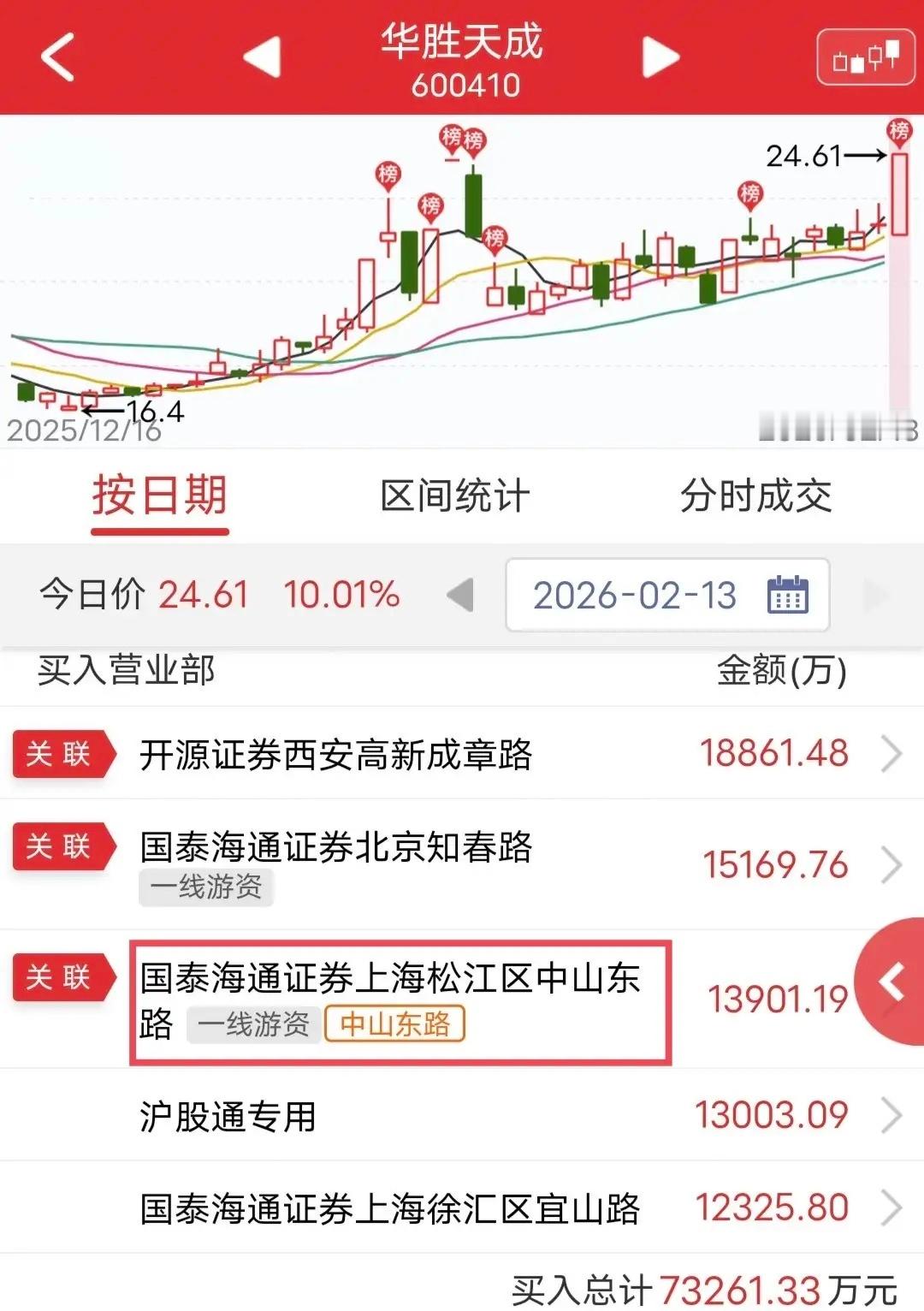 中山东路爆买1.39亿:今天华胜天成开盘快速涨停。盘后龙虎榜显示,中山东路爆买1