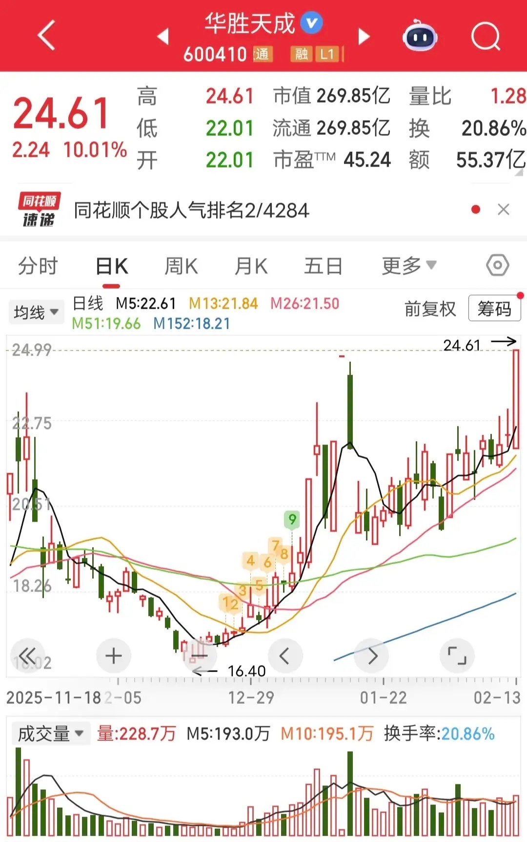 今天华胜天成开盘快速涨停。