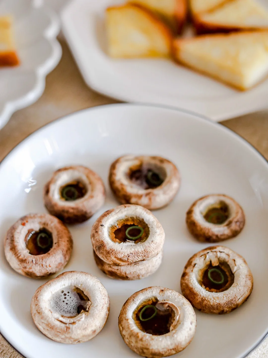 🌻早上还煎了一些口蘑,做法就更简单。口蘑最底下的蒂去掉,平底锅中加入适量的橄榄油,把口蘑放进去,中小火慢煎,直至口蘑的汤汁完全释放出来,撒上一丢丢食盐,放上一个葱花圈或者绿色小米辣圈圈,超级鲜~