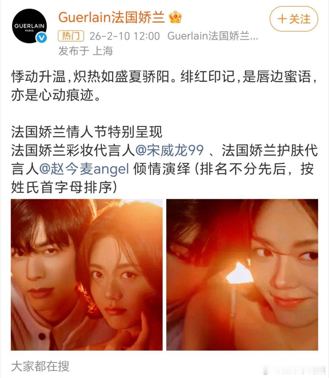 赵今麦宋威龙的新剧不是刚播完?前几天他们双人代言不是也营业的挺好?这俩粉丝怎么又