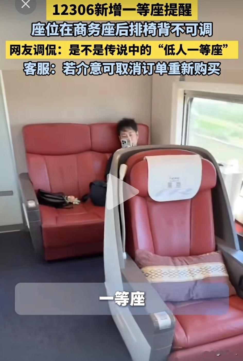哈哈哈哈哈哈笑死,“低人一等座”现在都有官方提醒了?!网友:分明是陪领导出差秘书专座! 最近有网友在12306买票,突然弹出一条温馨提示: “本次取票仅剩位于商务座小舱后排的一等座位(椅背不可调整,双人座中间无隔开扶手)。如需调整,请取消订单后重新购买其他席别。” 网友一看直接炸了:这不就是传说中的“低人一等座”吗?! 啥是“低人一等座”?来,给大家科普一下—— 就是你花了一等座的钱,却被安排到商务座车厢里坐着。看着身边都是高大上的商务座,舒舒服服躺着,而你只能直挺挺地坐着,椅子不能调,中间还没扶手,跟旁边的陌生人“亲密无间”。 那画面感:别人躺着刷剧,你坐着发呆;别人半躺着玩手机,你只能正襟危坐,像极了在领导办公室汇报工作的样子。 网友神评论:这哪是一等座,这是“一等人坐着,你站着”的座! 不过话说回来,12306这次还算良心,至少提前告诉你了。以前可是直接出票,上车才知道自己“低人一等”。 有网友说:“提前说明挺好,免得惊喜变惊吓。” 也有网友吐槽:“高峰期能买到票就不错了,还敢取消重买?手慢无啊!” 12306客服回应:因为部分列车编组时,商务座车厢后面会挂几节一等座,位置确实比较特殊,所以加个提醒。如果介意,可以取消重新买。 如果你买票时碰到这种情况,是选择“忍一时风平浪静”,还是“取消重买碰运气”? 评论区见分晓!👇 素材来源:钱江晚报,侵联删!