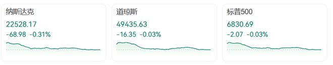 当地时间2月13日,美股三大指数集体震荡,红绿交替。截至发稿全线转跌,道指跌0.03%,纳指跌0.31%,标普500指数跌0.03%。