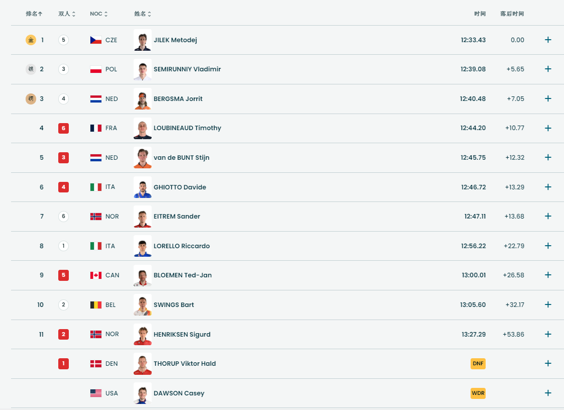 虎扑02月14日讯米兰冬奥会速度滑冰男子10000米决赛刚刚结束,捷克选手梅托杰-伊莱克以12:33.43成绩获得金牌。