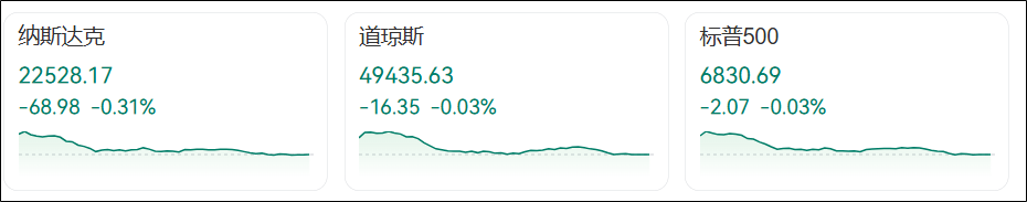 当地时间2月13日,美股三大指数集体震荡,红绿交替。截至发稿全线转跌,道指跌0.03%,纳指跌0.31%,标普500指数跌0.03%。
