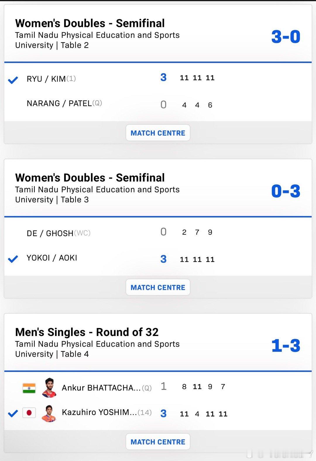 2026wtt金奈球星赛女子双打4-2金娜英/柳韩娜3-0娜朗/帕特尔横井咲樱/青木咲智3-0德努特/斯维斯特卡