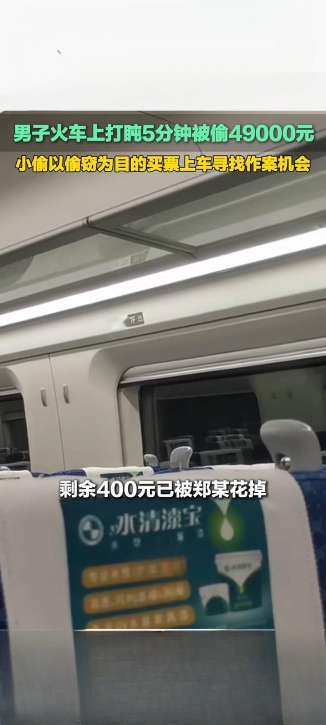 男子火车打盹5分钟被盗4.9万元 嫌疑人买票上车专伺机行窃 2025年8月9日上午11时许,C7038次列车从深圳站驶往广州白云站途中,乘客王先生在4号车厢打盹仅5分钟,放置于行李架双肩包内的49000元现金便被盗走,这起案件由深圳铁路公安处快速侦破,嫌疑人郑某某已被抓获。 经查,王先生因商务出行携带大额现金,打盹时被在车厢内游荡的郑某某盯上。列车临近广州东站,郑某某趁乘客起身取行李的人流间隙,迅速转移包内现金后丢弃空包,随即逃离车厢。王先生醒来发现失窃后立即报案,警方快速锁定行踪,在广州一出租屋将郑某某抓获,当场扣押被盗现金48600元,剩余400元已被其挥霍。 调查证实,郑某某并非临时起意,而是以盗窃为目的购票上车,案发当日还临时改乘列车寻找作案机会。其曾因盗窃罪获刑,2020年刑满释放,此次作案距刑罚执行完毕不足五年,属累犯。目前,郑某某因涉嫌盗窃罪被依法处理,将面临从重处罚。铁路警方提醒,旅客乘车时务必将贵重物品随身携带,切勿脱离视线,提高防盗警惕。 火车盗窃案 现金被盗
