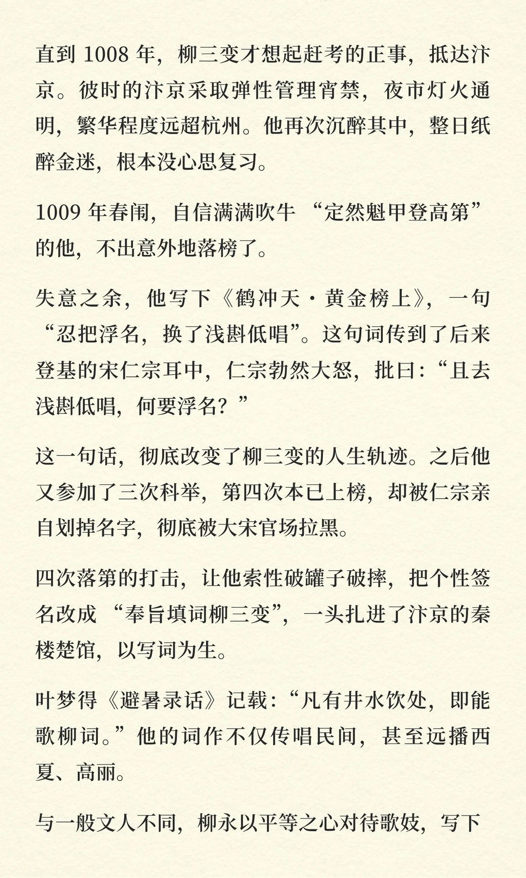 或许我们都该庆幸:历史留下了这样一个柳永,让我们看到人生除了“庙堂之高”,还有“江湖之远”可以栖息。
