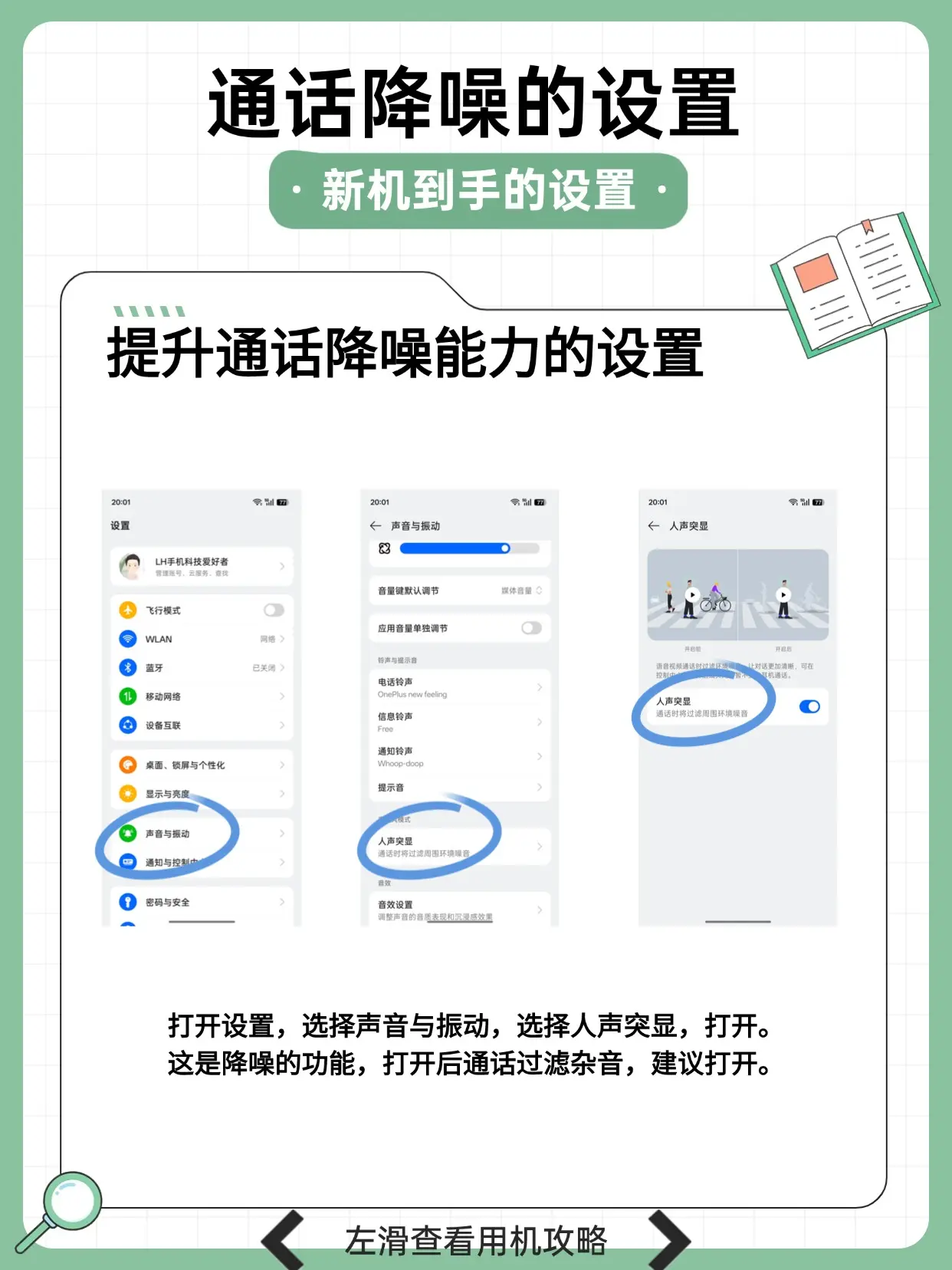 其次,打开人声突显功能。这个功能打开后可以提升通话质量,在复杂环境之下可以把周围杂音尽量降到最低,就是降噪,这是我个人比较在意的功能。
