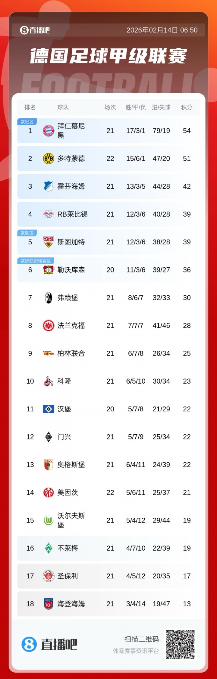 拜仁此前德甲两场不胜,目前少赛一场领先多特3分,仍有一定悬念。