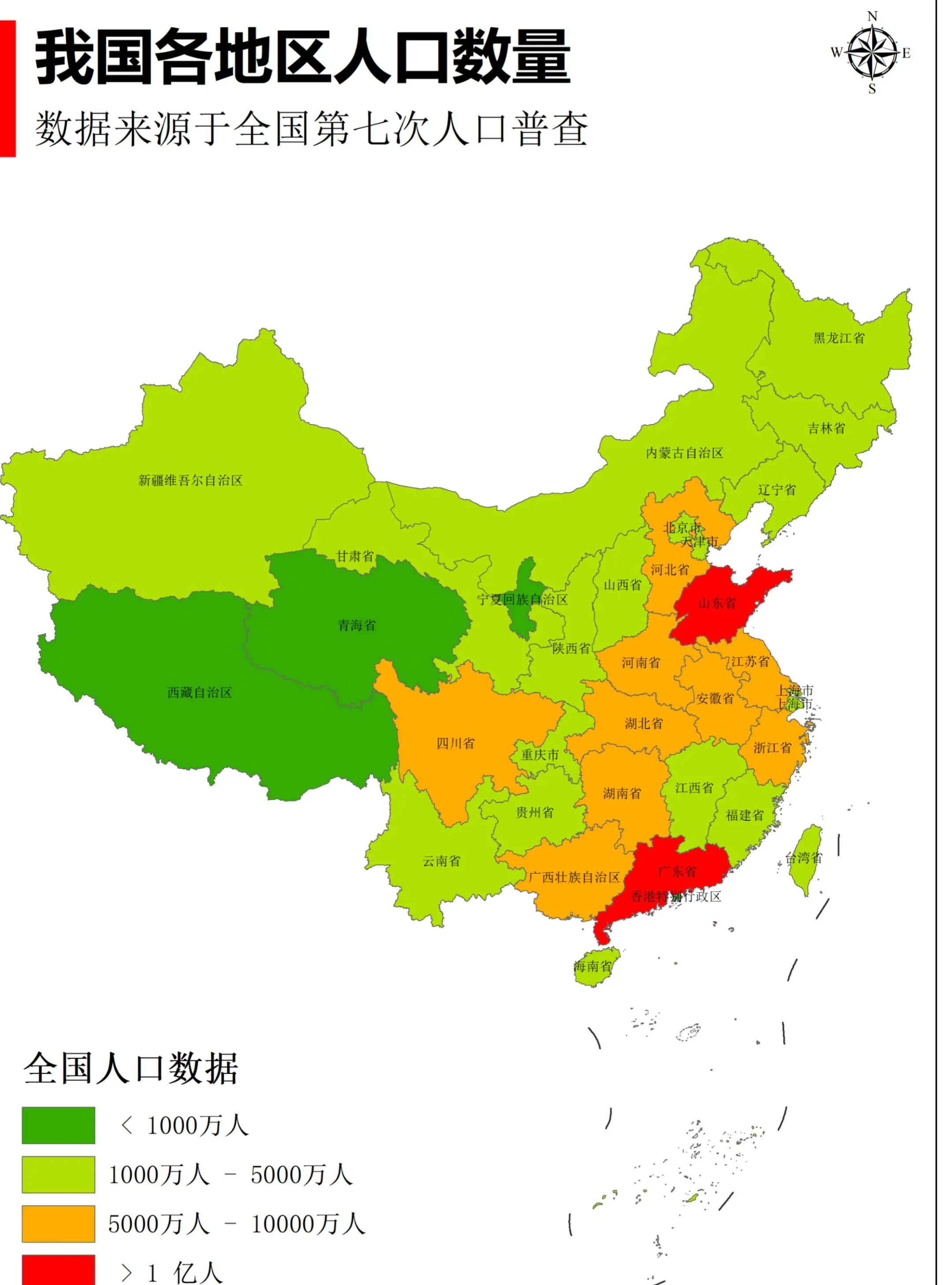 我国各省市自治区人口总数,过亿省只有2个。