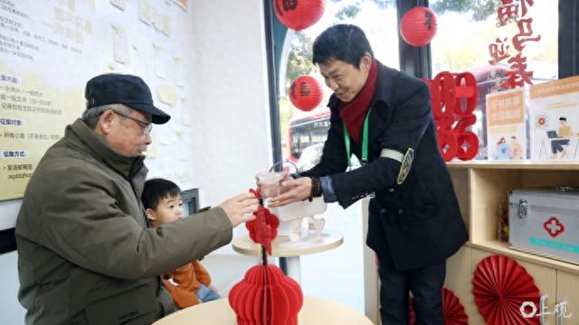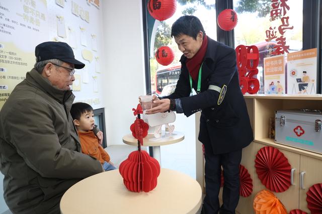 全新开放的“暖新巢”休息站充满温馨,工作人员让候车的祖孙进来取暖,喝杯热水。
