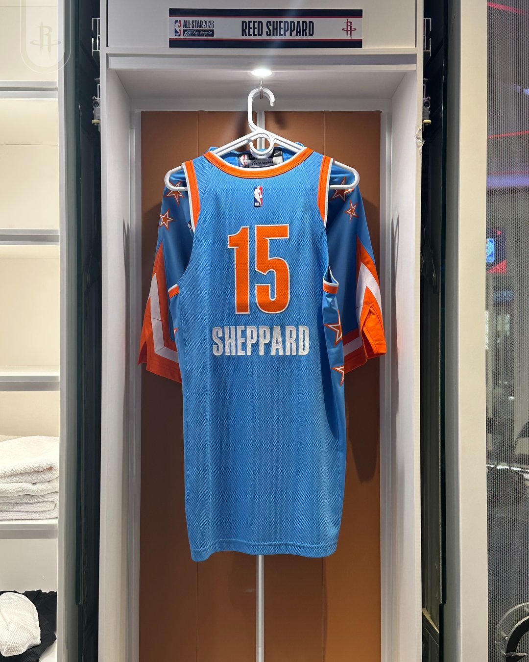 赛前,火箭社媒晒出里德-谢泼德的全明星新秀赛个人球衣。
