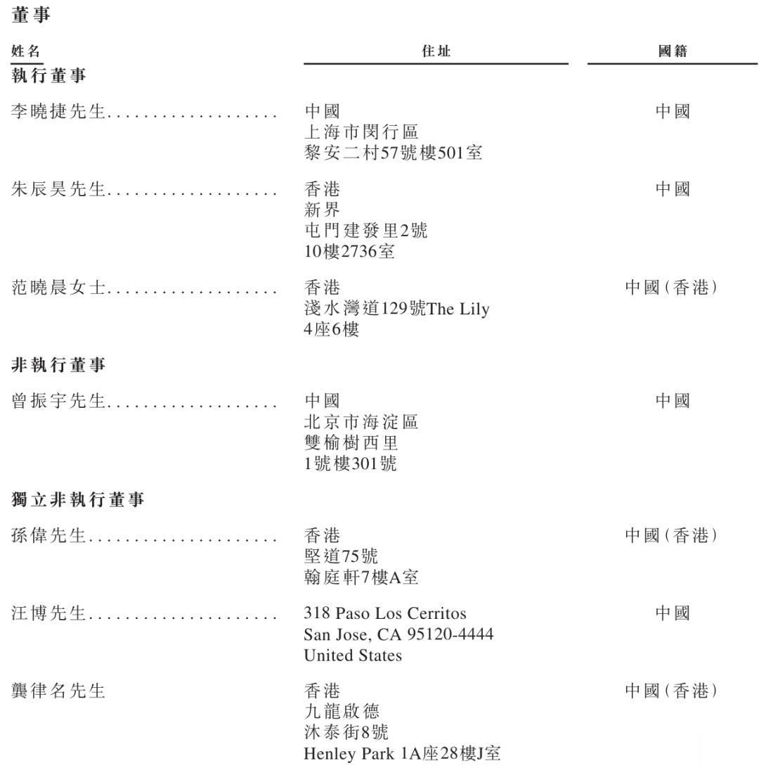 再惠执行董事分别为李晓捷、朱辰昊、范晓晨女士;非执行董事为曾振宇,独立非执行董事分别为孙伟、汪博、龚律名。