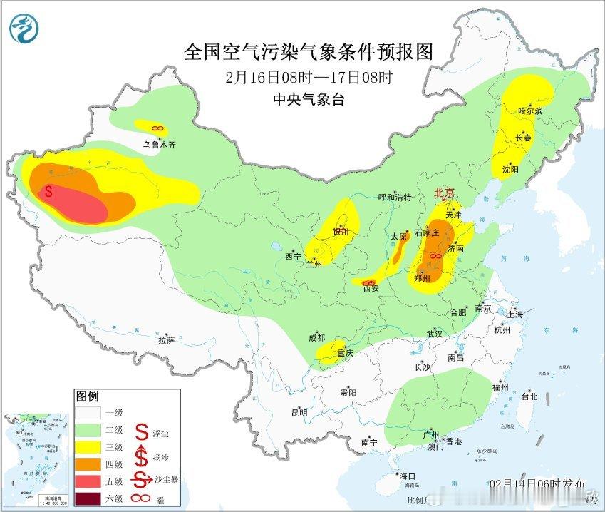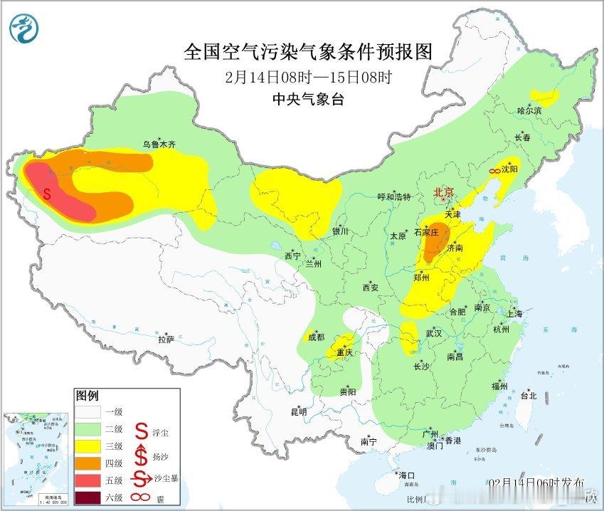 从空气质量看,吉林辽宁河北天津河南山东江苏等地存在轻度-中度污染,河北廊坊重污染,对应有霾。新疆塔里木盆地的浮尘污染持续,不过强度有所减轻。短期内,塔里木盆地的浮尘还会持续。14日上午,华北中南部、东北地区南部等地大气扩散条件一般,部分地区有间歇性轻至中度霾,14日下午起,受冷空气影响,上述地区霾天气自北向南逐渐减弱。不过16日以后,霾可能再发展。