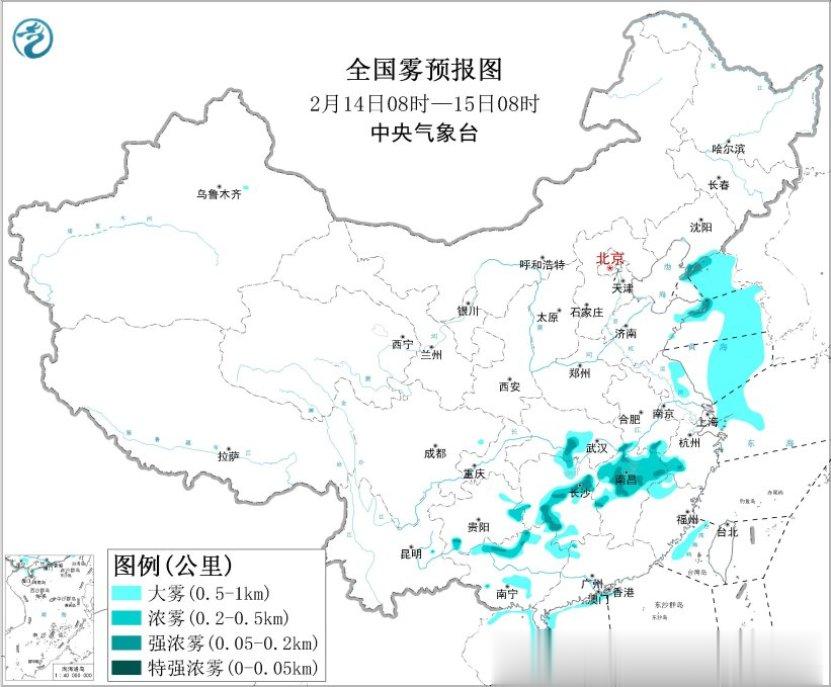 中央气象台今晨继续发布大雾黄色预警:今天(14日)上午,辽宁东部、山东东部、湖北中部、湖南中部和北部、江西北部、广西北部等地有能见度不足1公里的大雾,部分地区有能见度不足500米的浓雾,局地有能见度不足200米的强浓雾。今天白天至夜间,黄海大部、东海西北部、辽东半岛东部沿海、长江口附近海域、大连港、成山头、上海港有能见度不足1公里的大雾,部分时段能见度不足500米的浓雾。今天夜间至15日早晨,北部湾北部海域、琼州海峡、雷州半岛附近海域、广东沿海海域、台湾海峡有能见度不足1公里的大雾,部分时段能见度不足500米的浓雾。