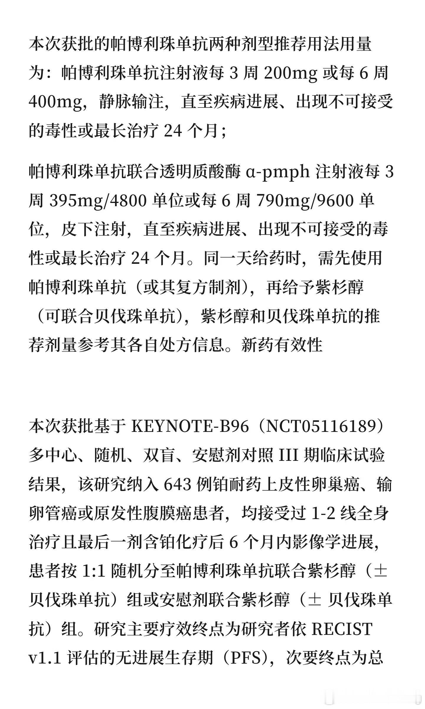 2026 年 2 月 10 日,美国食品药品监督管理局(FDA)批准默克公司的帕博利珠单抗、帕博利珠单抗联合透明质酸酶 α-pmph,与紫杉醇联合使用(可联合或不联合贝伐珠单抗),