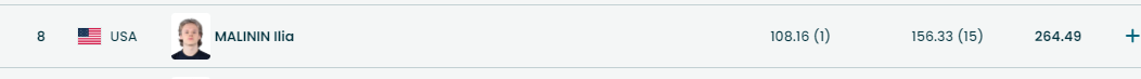 此前结束的短节目中,马里宁以108.16分短节目,领先第二名5.09分。