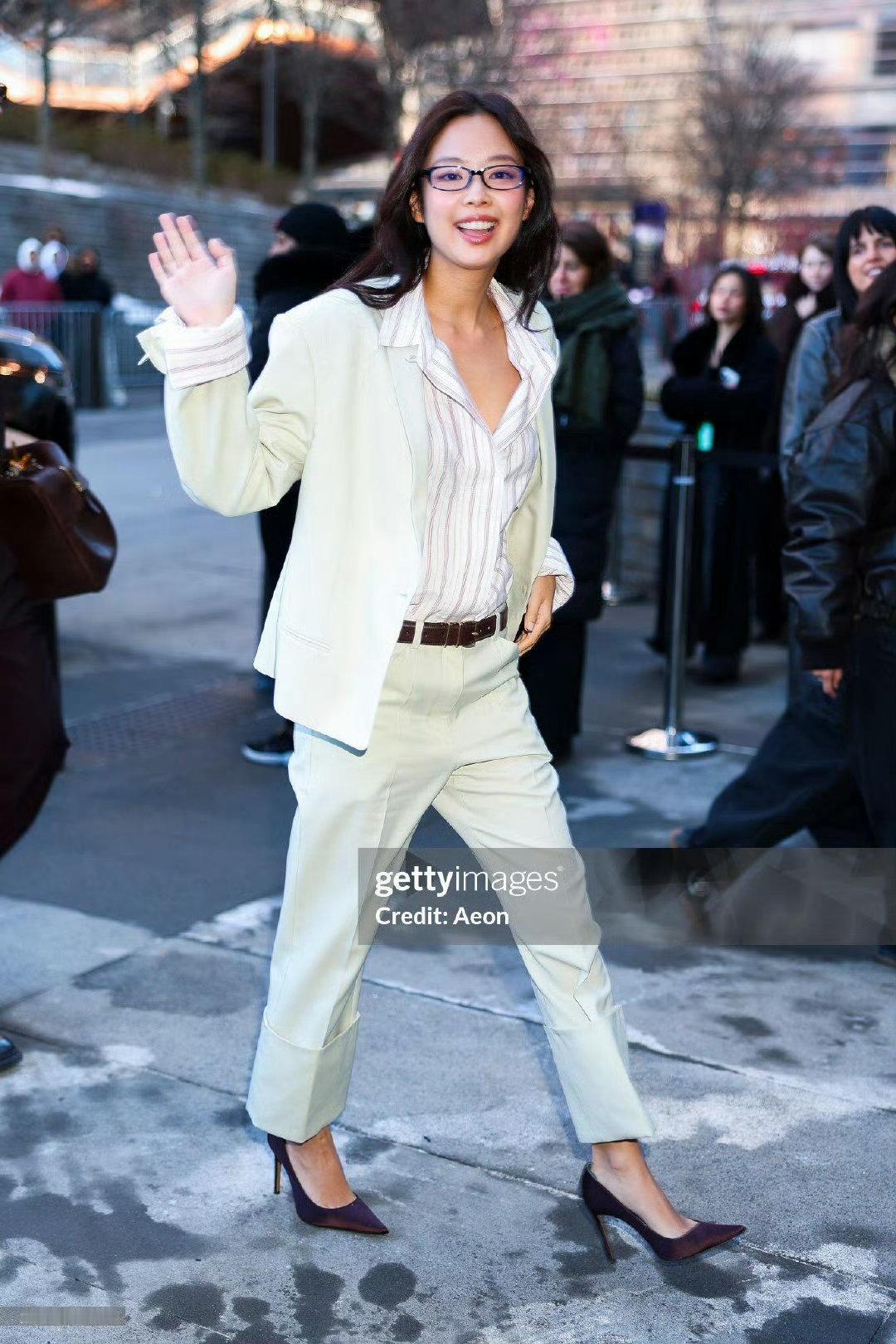 Jennie纽约时装周生图 Jennie黑框眼镜 生图直拍颜值抗打!黑框眼镜斯文又凌厉,白西装勾勒完美身材比例!