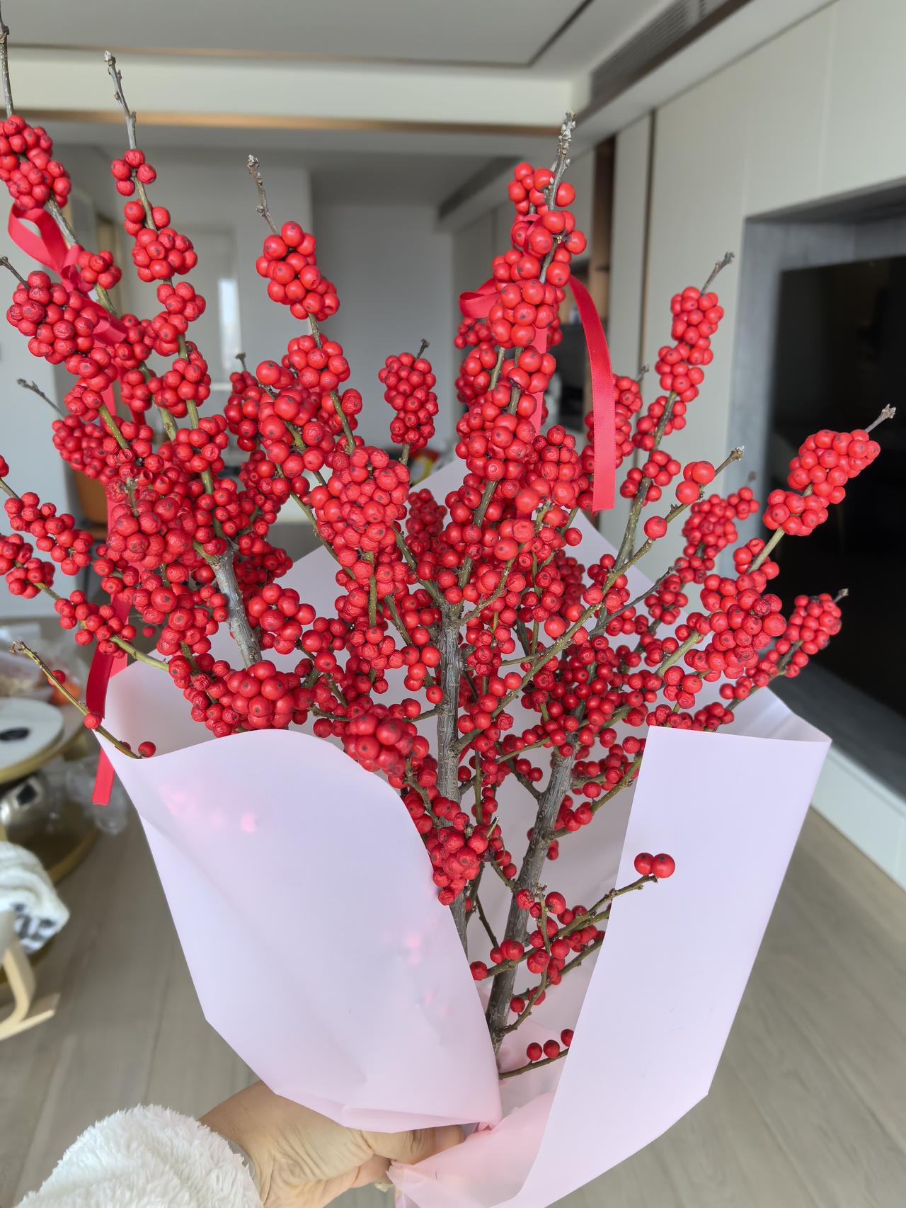 情人节到了,网上商家铺天盖地的“安利”洗脑,女人要收礼物,男人要送礼物,女人收到礼物的价值取决于男人爱你有多深,于是各种攀比各种矛盾由此引发。 年轻时也寄希望于别人,记得送礼物就很开心,忘了就心情低落。现在的心境就完全不一样了,收到礼物开心感谢,没有也正常,自己来吧。 这不昨天路过花店,买了一大捧红色月季花和挂满红彤彤小浆果的冬青,装饰在家里,马上节日气氛就拉满了,看着就心情愉悦。 看来靠自己的快乐才是靠谱的!