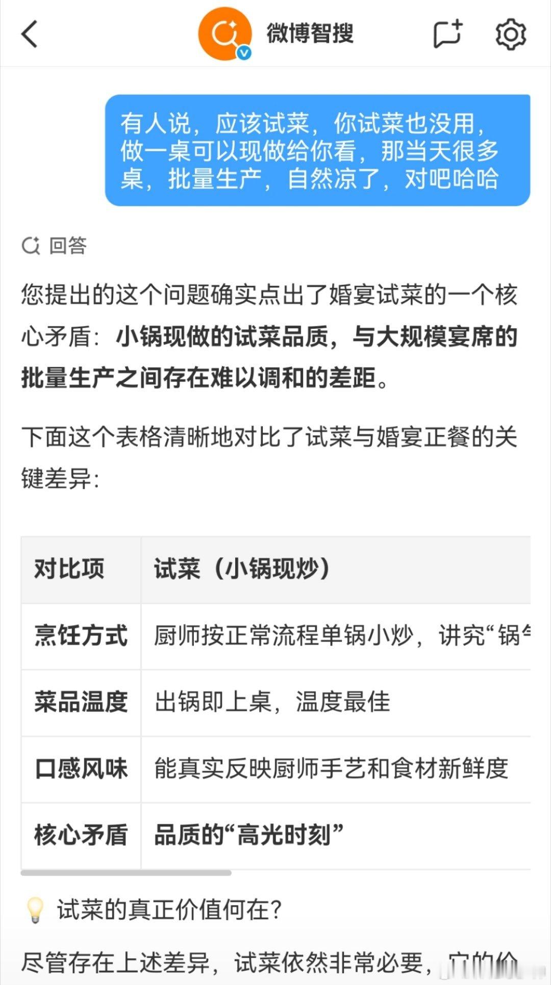 小锅现做的试菜品质,与大规模宴席的批量生产之间存在难以调和的差距。