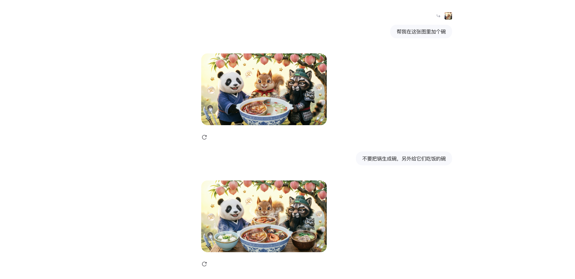 图像编辑方面,记者实测过程中发现,在剪映平台通过seedream5.0preview生图后,图片可调整范围包括裁剪、画质、像素等,但无法在生成过程中或完成进行局部调整。qwen-image-2.0则可在对话中直接根据指令调整图片,不过,图像编辑的准确度仍有待提升。记者尝试让qwen-image-2.0在《无厘头美食番》图中加入一个碗,qwen-image-2.0选择直接将火锅的外壳换成了碗,再次追加指令后,qwen-image-2.0成功加上了碗,甚至自主加上了桌子,展现了一定的逻辑推理能力,但碗内的食物又与火锅场景有一定脱离。