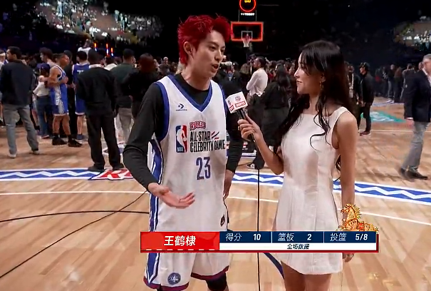 王鹤棣全明星名人赛全场投篮8中5,得到10分2篮板
