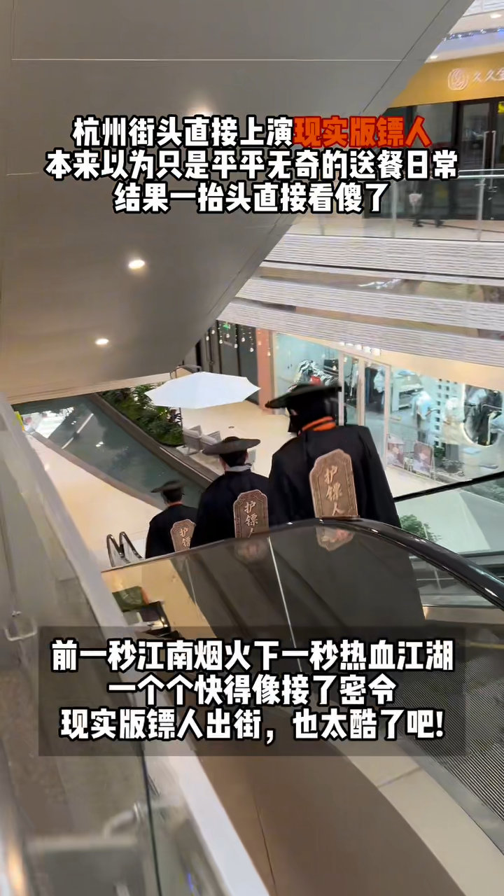 杭州街头偶遇镖人杭州街头惊现镖人小队杭州街头秒变江湖!黑衣斗笠镖人小队飒爽出街,