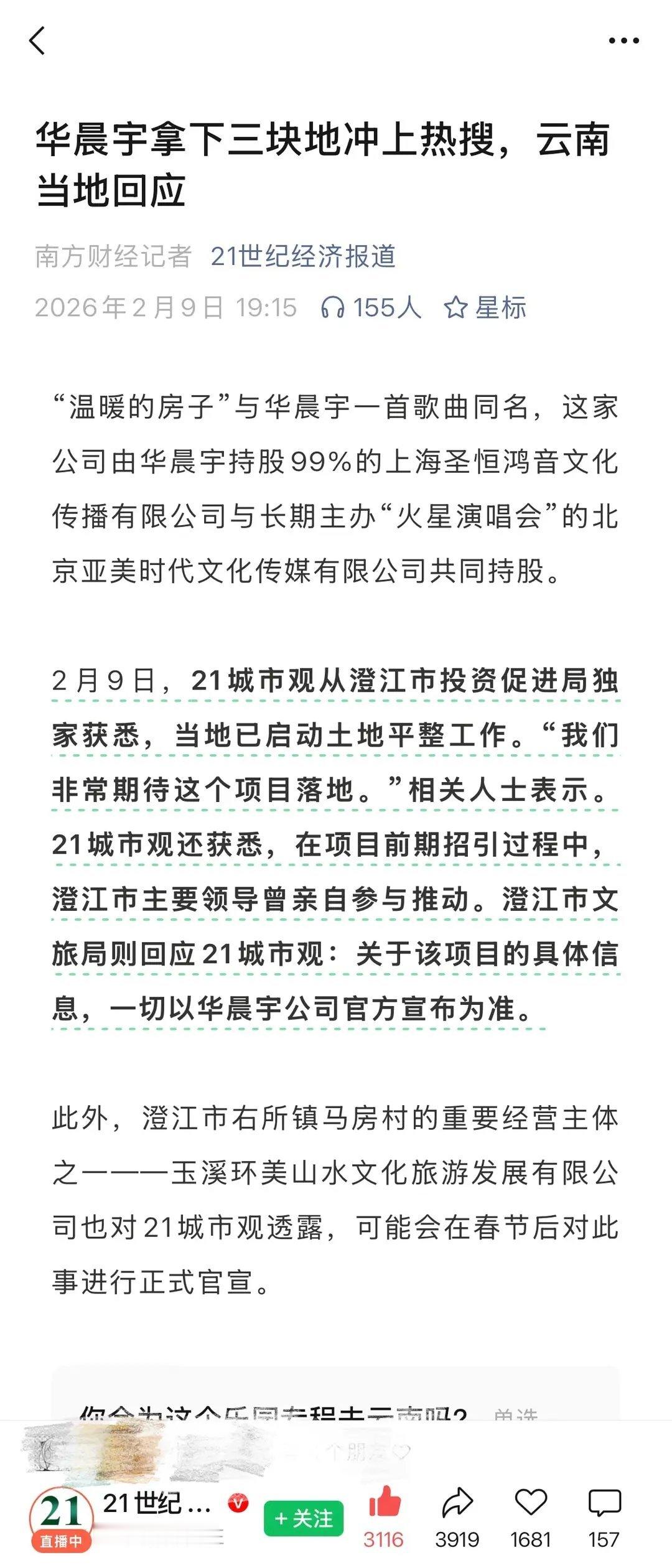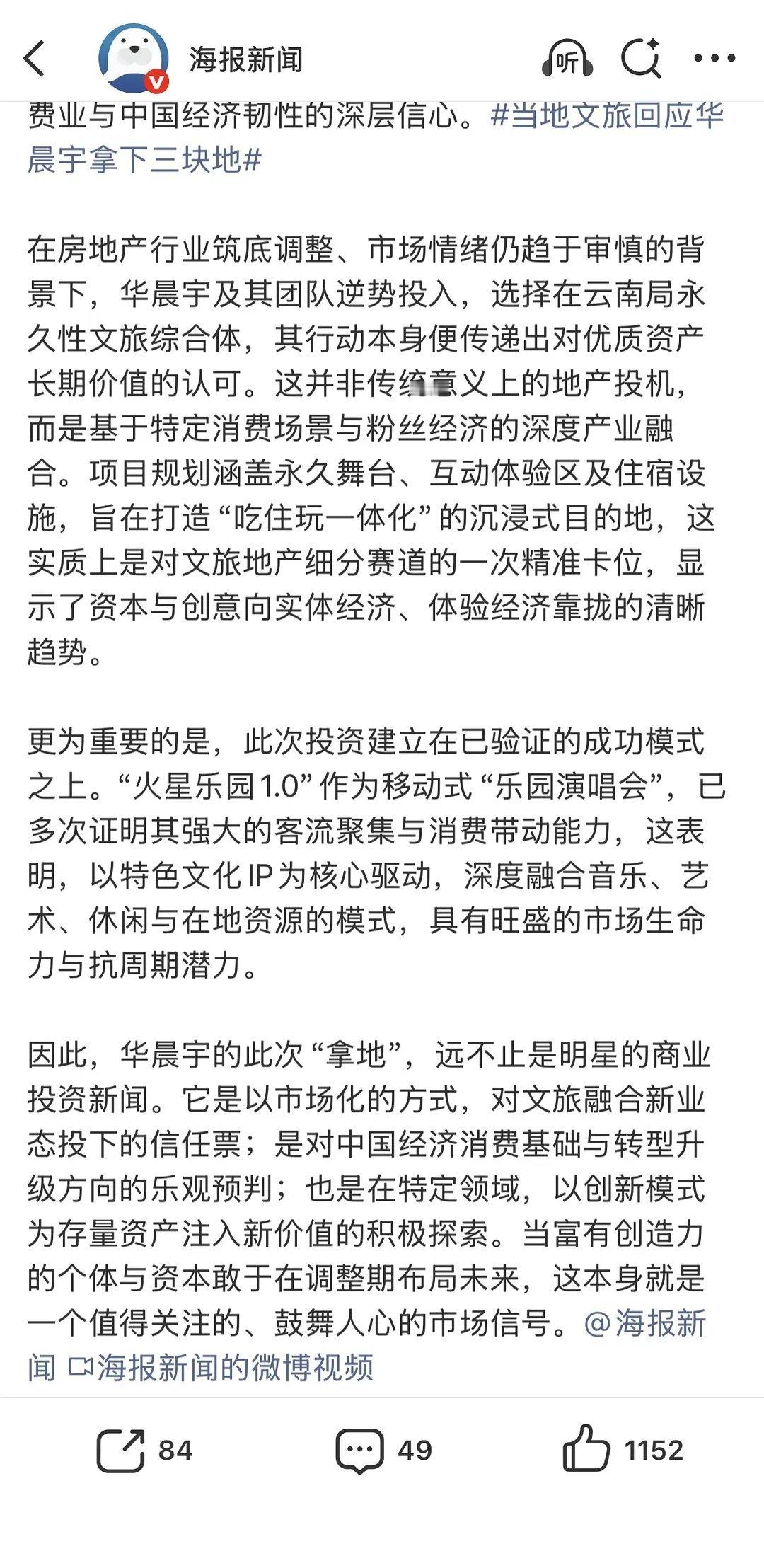 华晨宇拿下三块地有🐏媒背书,积极响应政//策,当地文旅亲自推动支持