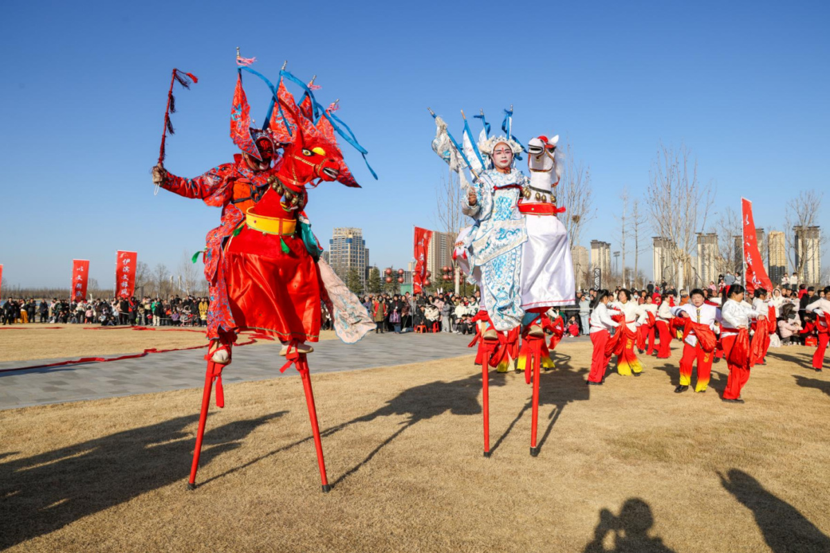2月7日下午,伊滨区冬季“村晚”在中央公园悦动广场精彩启幕。周边群众、过往游客欢聚一堂,掌声、欢呼声此起彼伏,浓浓年味扑面而来。百面大鼓阵列摆出骏马奔腾的视觉造型,队员们精神抖擞,以铿锵有力的鼓点共同奏响经典乐曲《赛马》,瞬间点燃现场氛围。“古味寻踪·年俗游园”沉浸式民俗游园会上,踩高跷、二鬼摔跤等非遗展演轮番上演,现场制作的炸油条、烙大饼、爆米花等年味美食香气四溢,集观赏、体验、美食于一体,将热闹祥和的春节氛围拉满。
