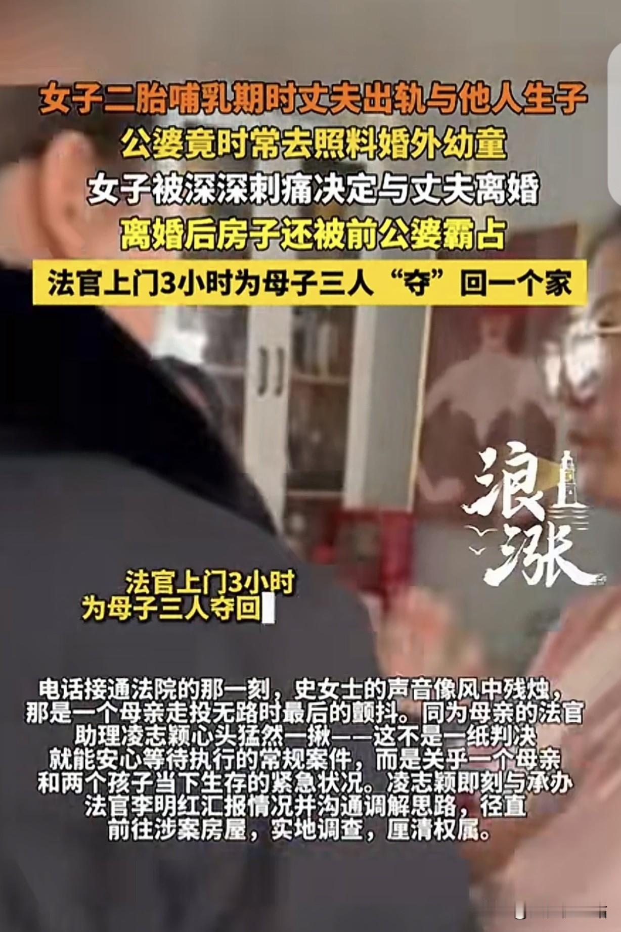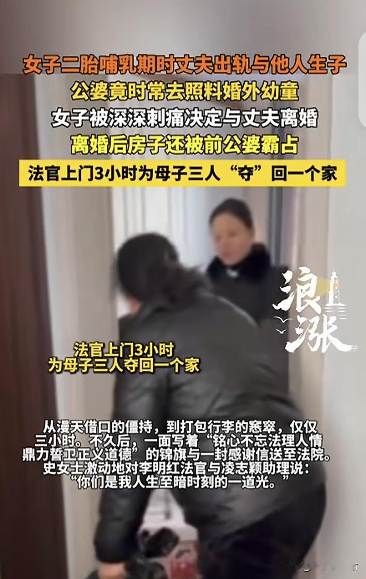 “上梁不正下梁歪!”北京,一女子2胎哺乳期,发现丈夫不但出轨,还跟第三者生了个儿子,让她火冒三丈的是,公婆还去照料那个私生子,真是家风不正呀,女子愤怒提出离婚,房子和2个孩子的抚养权都归女子所有,可不料,公婆却死皮赖脸住在房子里,说啥都不搬。女子崩溃了,给法院打去求助电话:我带着2个孩子,请帮帮我,我快撑不住了!结局大快人心。网友:短剧里才会出现的极品一家,原来现实中也有! 北京冬天那种冷,是干的、硬的,风吹过来像把脸皮刮紧,史女士挂断电话的时候,心里那股冷更直接——不是天气,是从“家里”冒出来的寒意。 电话是法院执行局打来的,她手里攥着手机,指尖发麻,声音也还在抖,她是二胎妈妈,孩子还在哺乳期,整个人本来就处在最虚弱、最需要支持的阶段。 可她在电话里说的却是求助的话:“我带着两个孩子,真的撑不住了,能不能帮帮我。” 婚姻里最难扛的,往往不是一次争吵,而是你发现自己被一群人同时抛下。 史女士还在坐月子、喂奶的时候,丈夫就在外面出轨了,更糟的是,对方不仅没收手,还和第三者有了孩子。 对史女士来说,这已经不是“感情淡了”“不合适”这种层面的伤害,而是明晃晃地把婚姻契约踩在脚下,她真正崩溃的点,往往也不只是丈夫这一刀,而是公婆的站队。 按常理,老人发现儿子做出这种事,起码会劝、会骂、会压着处理,哪怕是为了两个孙辈和家庭体面。 可这对公婆没有,相反,他们跑去帮着照顾那个私生子,把精力和态度都摆得很明白:他们在用行动告诉史女士——你和你生的两个孩子,不再是他们心里“优先”的那一边。 这种背刺,对一个刚生产不久的女性来说非常狠,她白天抱着孩子喂奶,晚上还要哄睡、换尿布,身体疼、睡眠碎、情绪也容易波动,本来就最需要家人的支撑。 结果你发现,最应该站在你这边的人,全都拐到对面去了,那种感觉不是“气”,更像被推到悬崖边:你连讲理的对象都没有。 史女士后来选择离婚,很多人会以为“为了孩子忍一忍”,但她没走那条路,她把证据整理好,走诉讼程序。 法院审理这种案子,靠的是证据与事实,而不是双方在法庭上谁更会哭,最终判决结果对她相对有利:房子判归她,两个孩子的抚养权也归她。 这种结果是对有过错一方的责任分配,尤其在涉及重大过错时,财产分割和子女抚养,安排会更强调对无过错方的保护、对孩子稳定生活环境的保障。 判决一生效,按理说事情就该进入“各过各的”阶段:房子归谁,谁住;不属于自己的,就该搬走。 可现实里最磨人的,往往就在执行这一步,史女士的前公婆赖在房子里不走,拖着、耗着,甚至还会用“老人”“没地方住”“你不能把我们怎么样”这样的理由来压人。 对史女士来说,这不是简单的“住不住”的问题,她带着两个小孩子,任何一次冲突,都可能演变成拉扯、吵闹,孩子受惊,她自己也受不了。 更现实的是,她很难靠自己把两个老人“请出去”,报警也往往只能先做协调,最后还是回到法院执行。 这就是她给执行局打电话求助的原因,她不是想“赢面子”,她是想要一个能睡觉的家,对一个哺乳期妈妈来说,家里多出两个不愿离开的前公婆,意味着每天都要提防。 门会不会被反锁、东西会不会被动、孩子哭闹会不会被借题发挥、甚至自己会不会被言语羞辱,那种持续的高压,足以把人逼到崩溃。 执行局接到情况后,走的是依法强制执行的流程,执行法官带队上门,法警随行,出示生效法律文书,明确告知:房屋权属已经判定,继续占用属于拒不履行。 接下来就是清退,执行过程不会像电视剧那样“讲感情”,更多是按步骤来:沟通告知、限期自行搬离、登记物品、必要时协助搬运、全程执法记录仪记录,避免双方事后各说各话。 整个过程大约3个小时结束,执行并没有被拖成多次反复,也没有陷入长时间的纠缠,前公婆如果试图用撒泼、哭闹、拖延那一套争取“继续住”,在法警和记录下通常不会有效。 最后他们被带离,房子回到史女士手里,对外人看是“清退完成”,对她来说更像一口气终于能喘上来——不是报复成功,而是基本生活秩序终于被恢复。 门能关上,钥匙在自己手里,孩子晚上哭了,不用担心有人在旁边冷嘲热讽。 这件事让人不舒服的地方在于,它提醒很多人:婚姻问题从来不只是两个人的事,有些家庭里,老人对是非的判断和对儿媳的态度,会在关键时刻,把矛盾放大成“合围”。 史女士这次能走出来,靠的不是忍耐,也不是求情,而是把问题放到法律框架里解决——当对方不讲理、不讲边界时,道德劝说往往没有用,能真正起作用的,就是生效判决和执行程序。 房子最终回来了,但这并不等于她从此就轻松,她接下来还要独自养两个孩子,要面对抚养费、探视、生活开支、工作恢复等一串现实问题。 不过至少在那个晚上,她和孩子能在属于自己的房子里把门关上,踏踏实实睡一觉,这种“正常”,对她来说已经很难得。