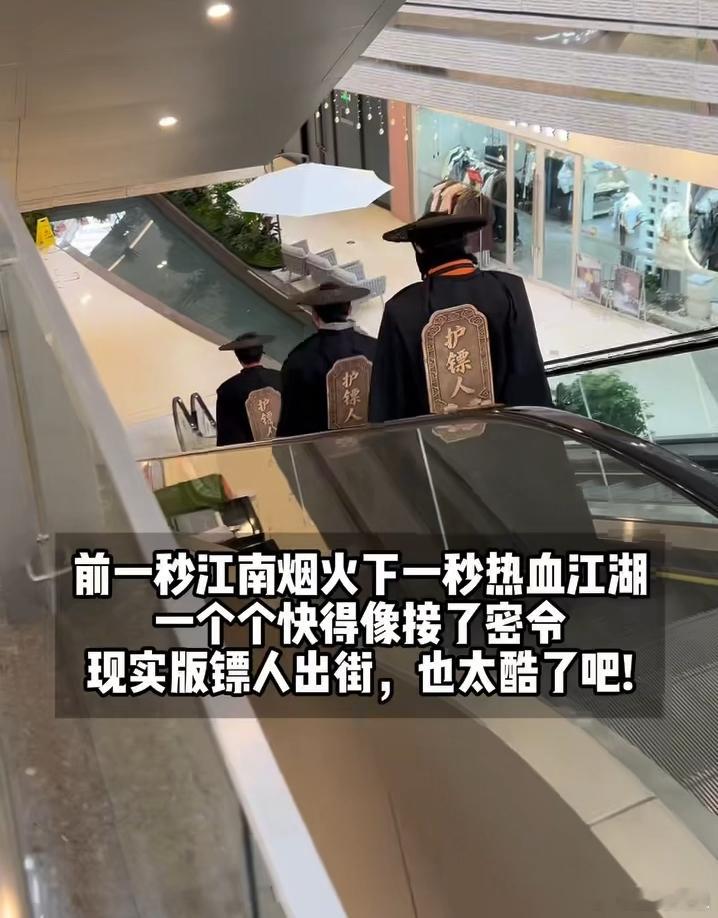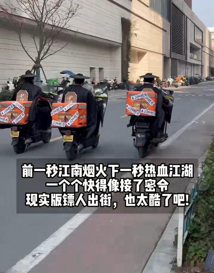 杭州街头偶遇镖人杭州街头惊现镖人小队 谁懂啊!杭州街头突然撞见黑衣斗笠的“镖人”小队,披风飒爽,连外卖小哥都看傻了。前一秒江南烟火,下一秒热血江湖,这送餐仪式感直接拉满!