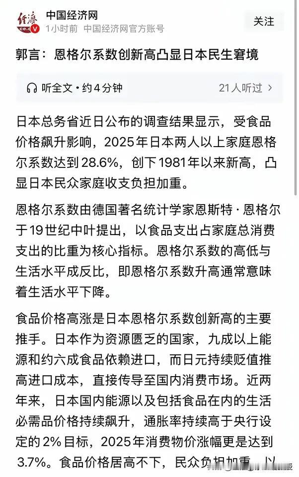 日本股市创新高,日本人却吃不起大米?股市狂欢背后是民生的残酷真相! 看下图,日经225冲破58000点,日本恩格尔系数却飙到28.6%,创44年新高,这魔幻反差背后藏着三个扎心真相: 1. 股民结构极度老龄化:日本个人股东约1525万,60-80岁占比超30%,仅占总人口12%,年轻人根本没资本入场。 2. 股市收益与普通人无关:日经指数年化回报约12.4%,但散户人均持股仅4.88只,且多为养老金配置,无法覆盖食品通胀3.7%的压力。 3. 养老金不够,只能打工续命:日本65岁以上人口占比28.7%,养老金仅能覆盖基本生活,900万老人被迫再就业,根本没能力靠炒股致富。 股市狂欢是资本的盛宴,民生窘迫才是大多数日本人的日常。目前高市早苗继续推进安倍经济学2.0大放水不止,股市狂欢与民生凋敝越走越远,日本民众的日子只会更难熬。