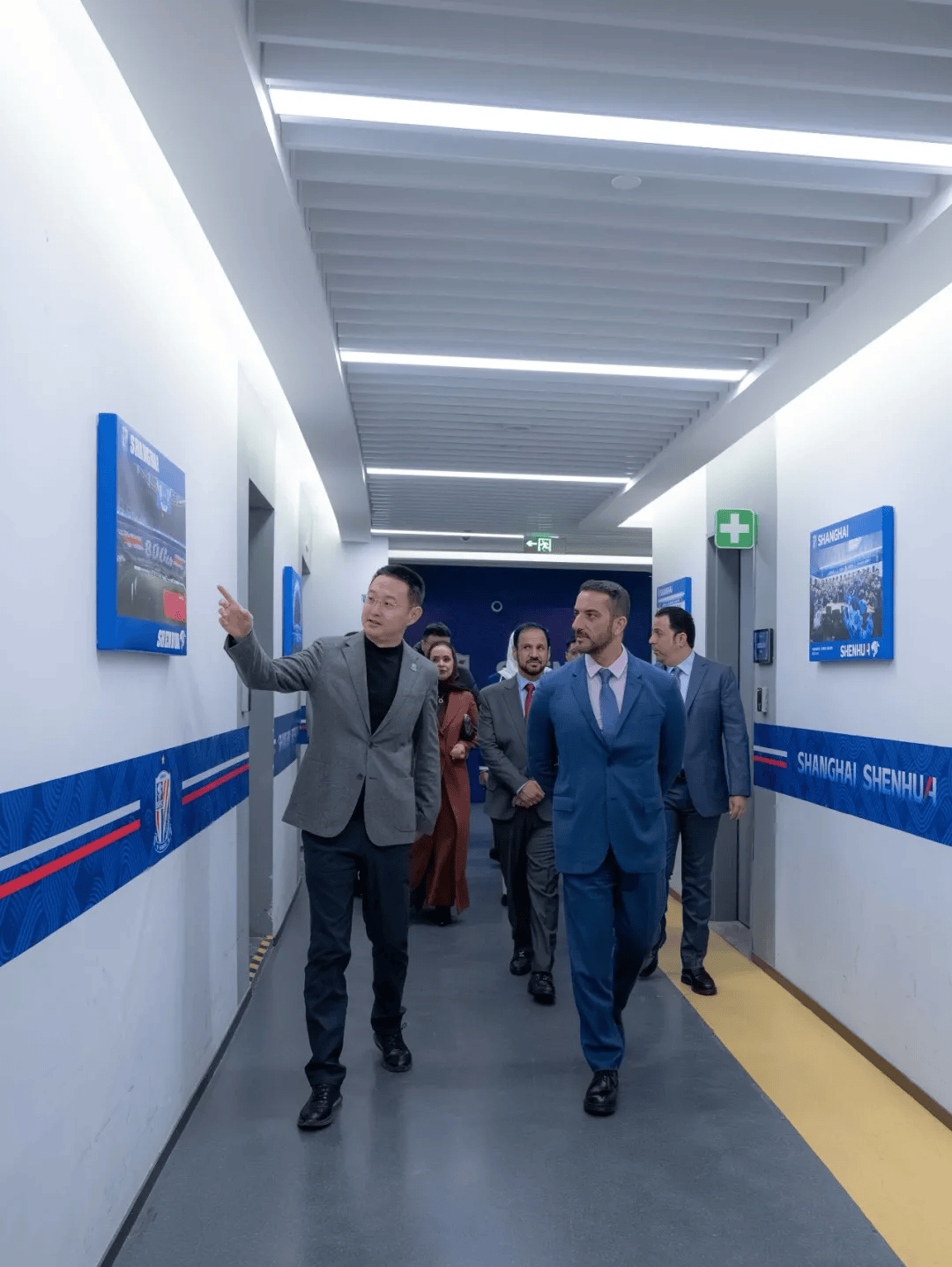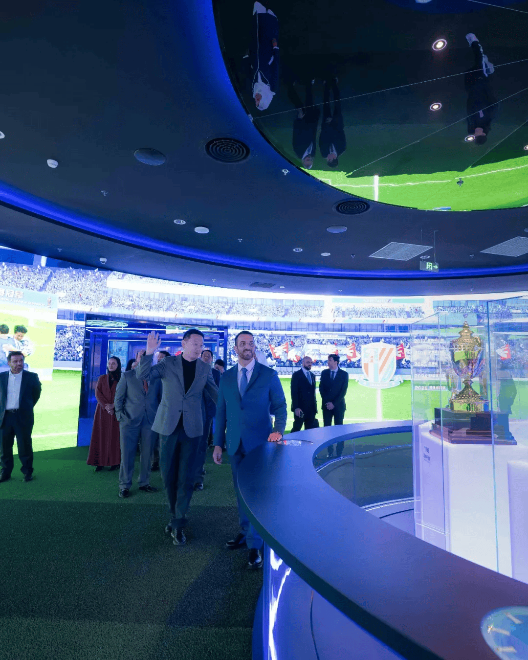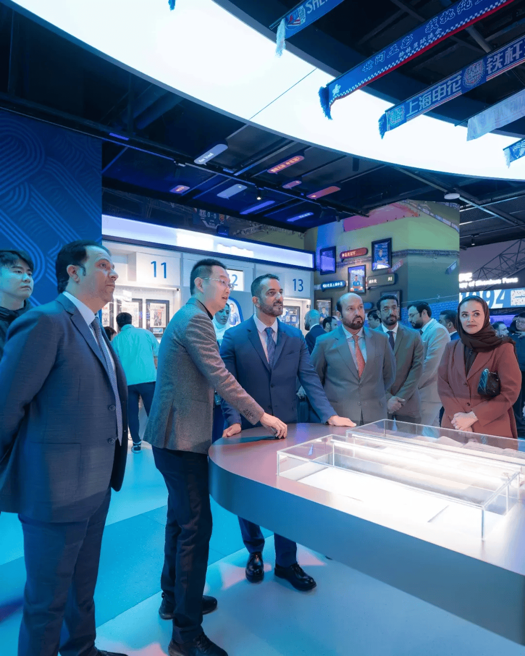 今日,阿联酋沙迦酋长国副酋长兼沙迦媒体委员会主席谢赫苏尔坦-本-艾哈迈德-卡西米殿下率沙迦媒体委员会董事会成员及媒体局团队一行拜访上海申花足球俱乐部。申花俱乐部向卡西米赠送申花全队签名球衣和足球,并陪同参观上海体育场和申花中心。