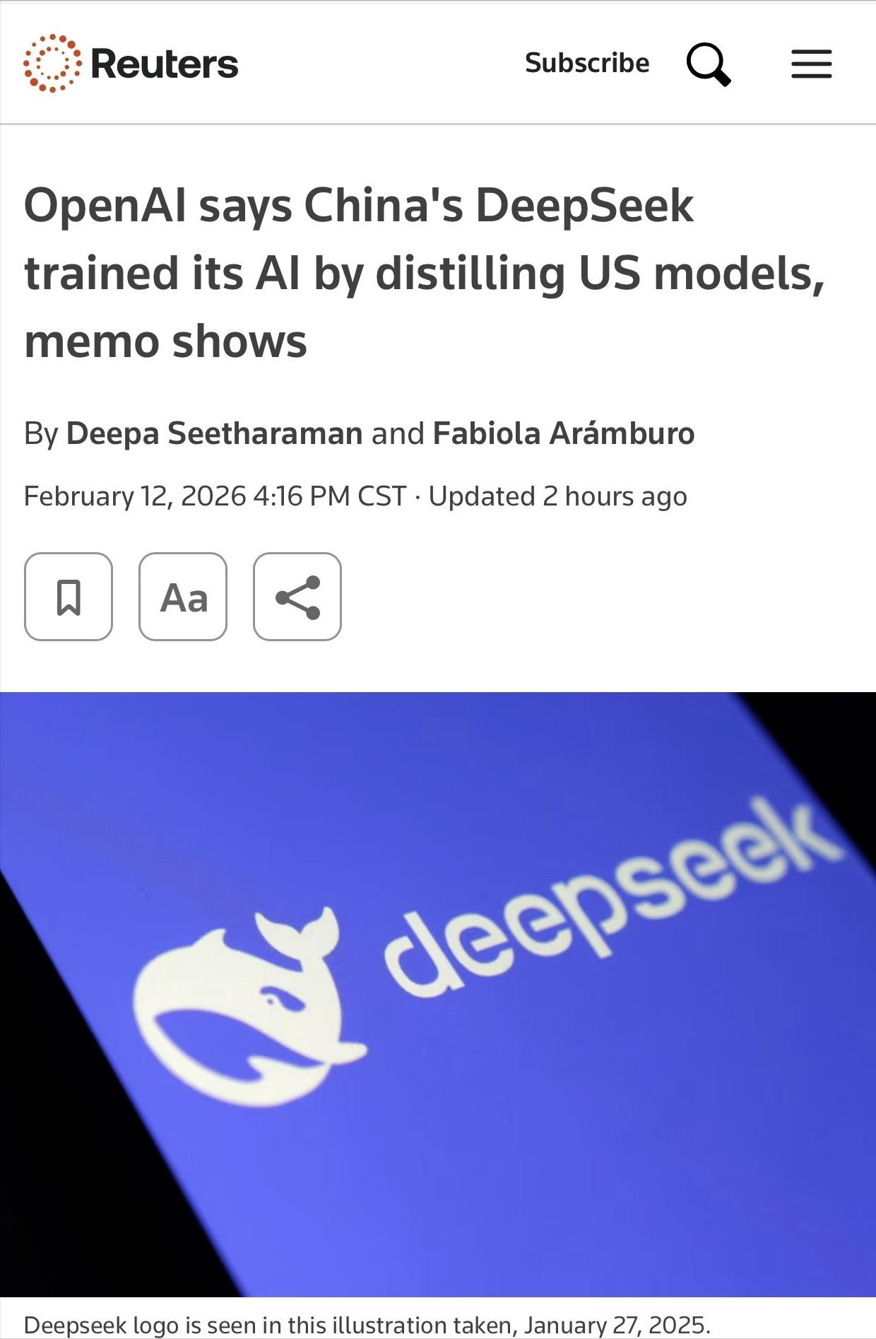 多家英文媒体报道,OpenAI 已向美国国会“美中战略竞争特别委员会”提交备忘录,指控中国人工智能公司 DeepSeek 通过“知识蒸馏(distillation)”方式,从美国领先的大模型输出中提取结果,用于训练自身模型,并称相关做法“既不公平且日益复杂”。 所谓的“知识蒸馏”根本不是什么见不得人的黑科技,反而在AI圈是个很常见的“省钱省力”技巧。 简单说,就是把那些参数庞大、耗钱耗算力的顶级AI模型(比如OpenAI的GPT-4o)当成“老师”,再找一个小巧、低成本的模型当“学生”,让“学生”模仿“老师”的回答逻辑、推理过程,甚至是“犹豫”的细节,最终实现“瘦身不缩水”——学生模型体积变小、成本降低,能力却能接近老师模型。 就像我们上学时,尖子生把复杂的解题思路简化后教给同学,同学不用再从头摸索,就能快速掌握解题技巧,本质上是一种高效的技术优化方式,微软、谷歌这些大厂都用过,并不是DeepSeek独创的。 这次OpenAI的指控,核心不是“知识蒸馏”本身,而是说DeepSeek没经过允许,用了不正当手段。根据OpenAI提交的备忘录(日期是2026年2月12日),他们声称监测到和DeepSeek员工相关的账户,通过第三方路由器、程序化工具伪装访问,绕开了OpenAI的安全防护,批量提取GPT-4o等模型的输出内容,再用这些内容通过蒸馏技术训练自家的R1、V3系列模型。 OpenAI还倒苦水,说他们研发这些顶级模型花了数十亿美元,投入了海量算力,DeepSeek这样做就是“系统性搭便车”,不仅不公平,还可能带来安全风险——毕竟美国的模型有严格的安全过滤,而蒸馏后可能会让敏感领域的技术能力脱离管控。 面对这场指控,DeepSeek的反应却异常淡定,没有陷入口水战,只用简单的几句话就直击要害:自家模型的训练数据,全都来自公开网页和电子书,从没使用过未经授权的合成数据; 核心架构、训练方法都是自主研发的,如果真的是“抄作业”,怎么可能做到训练成本只有几百万美元,却能在国际测评中接近GPT-4o的水平? 这话其实很有道理,要知道,OpenAI训练一个模型动辄要花数亿美元,而DeepSeek的R1模型,用的还是上一代芯片,却通过算法优化,把算力消耗降到了最低。 还做到了全部开源,代码和技术方案都能公开查询,这种“低成本高性能”的模式,恰恰打破了硅谷巨头垄断的行业规则——以前大家都觉得,做顶级AI必须砸钱堆算力,而DeepSeek证明,靠技术优化,同样能做出世界级的模型。 其实明眼人都能看出来,这场指控根本不只是简单的商业纠纷,更像是硅谷巨头的“焦虑宣泄”。OpenAI自己也在备忘录里承认,美国在AI领域的领先优势“并不大,而且正在缩小”,而DeepSeek的快速崛起,无疑刺痛了他们的神经。 要知道,DeepSeek的模型在数学、代码、推理等方面的表现,已经接近美国的顶级模型,还能以更低的价格提供服务,这直接冲击了OpenAI的市场地位,也让华尔街开始反思,美国公司这种“高成本”模式到底合不合理。 硅谷圈内也有不同声音,谷歌大脑创始人吴恩达、Meta AI首席科学家杨立昆等人都公开表示,DeepSeek的成功是算法效率的胜利,OpenAI的指控更像是在打压竞争对手。 目前,这场争议还没有定论,没有任何法院或监管机构认定DeepSeek存在侵权行为,而且全球范围内,关于“知识蒸馏是否构成侵权”,至今没有统一的法律界定——如果经过授权,就是正常的技术合作;如果爬取未授权的API输出,可能违反服务条款; 但如果只是学习公开数据中的AI内容,就是行业普遍行为。说到底,这场风波的本质,是全球AI赛道的话语权之争,美国想保住自己的领先优势,试图通过政策和舆论打压中国AI企业,而DeepSeek的崛起,恰恰说明中国AI已经摆脱了“跟跑”的标签,开始走出自己的特色路线。 类似的技术博弈未来只会越来越多,但封锁和打压从来挡不住创新。就像英伟达CEO黄仁勋说的,出口管制只会加速中国本土芯片和AI技术的成熟。OpenAI的指控,或许能暂时制造一些麻烦,但真正能决定企业未来的,还是技术实力。 对于我们普通人来说,不管是OpenAI还是DeepSeek,最终能带来更便捷、更便宜的AI服务,才是最实在的。而这场“抄作业”之争的背后,其实是中国AI从“追赶”到“突破”的缩影,未来,相信会有更多像DeepSeek这样的企业,用技术创新打破垄断,在全球AI舞台上拥有更多话语权。
