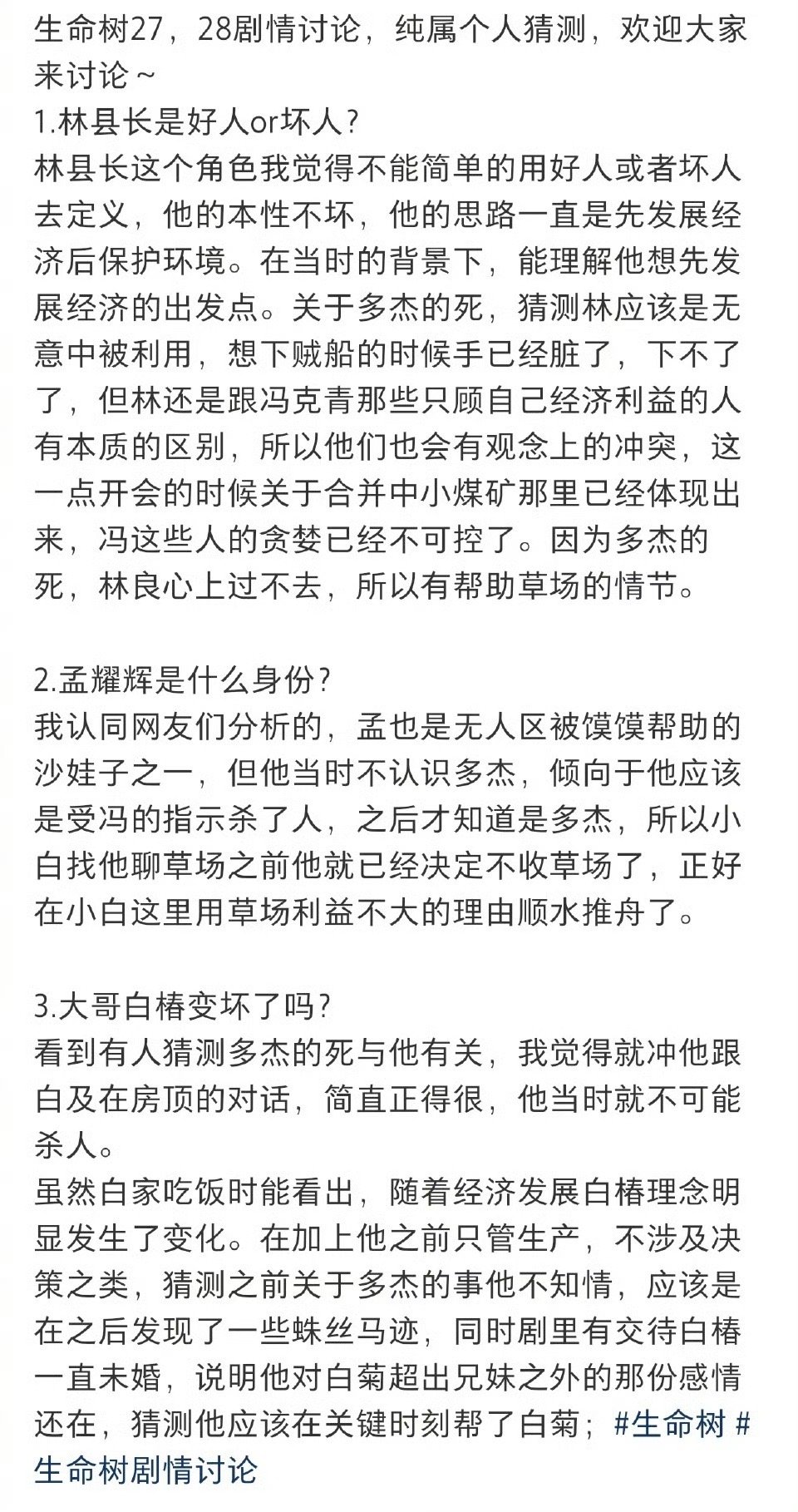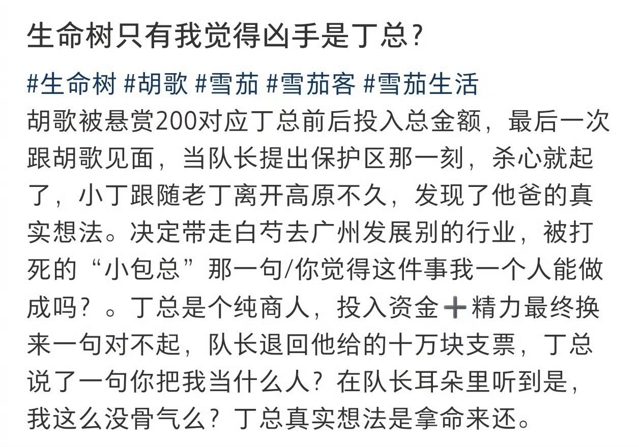 生命树剧粉人均福尔摩斯电视剧生命树 冯克青、孟耀辉、吴江,三选一的题,比高考数学还难。孟耀辉手段最多,吴江藏得最深,冯克青最像幕后。弹幕每天换人怀疑,今天骂这个,明天骂那个。等真凶出来那天,估计大家都得说“果然是他”。