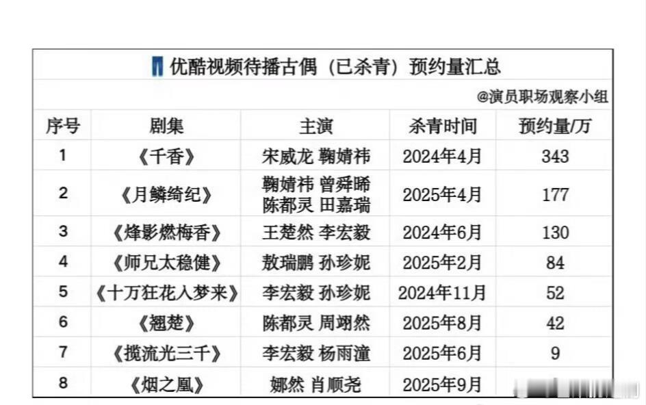 各平台古偶预约量,来看看有你想看的吗?