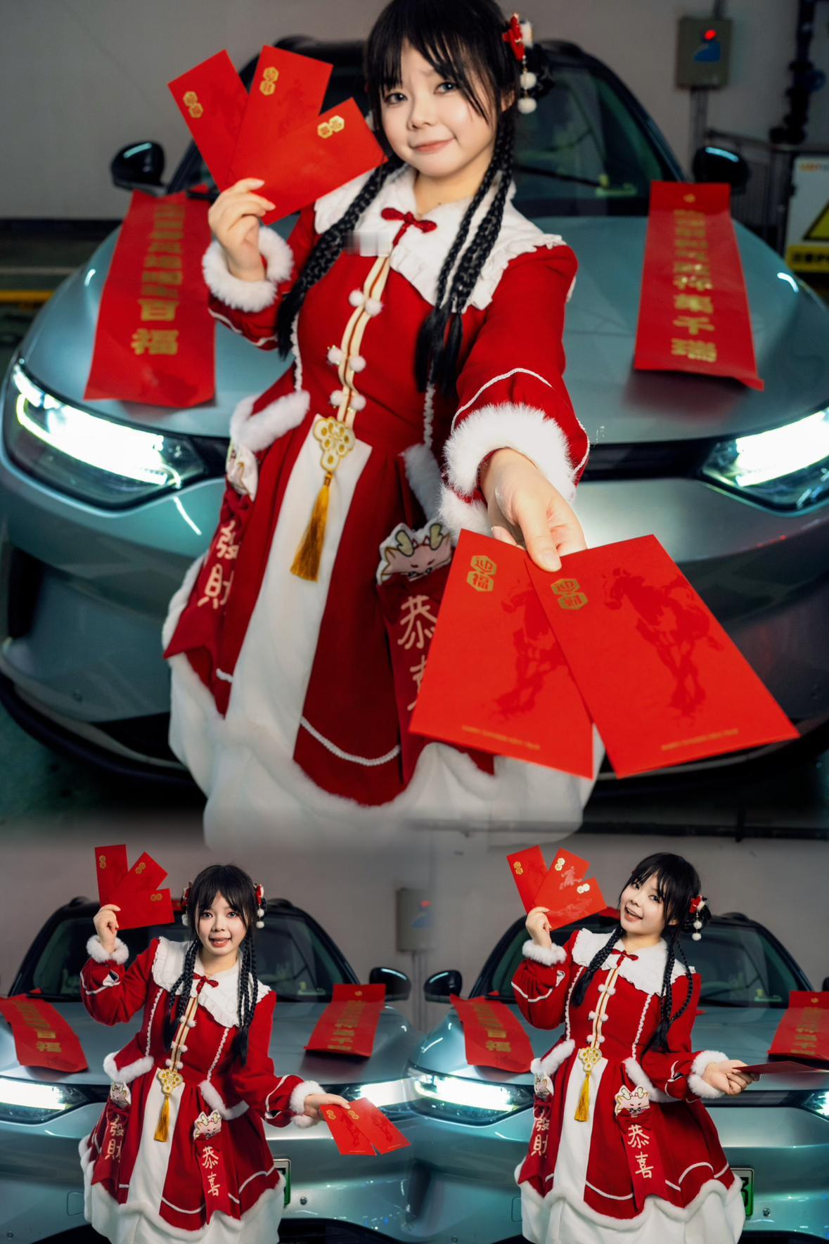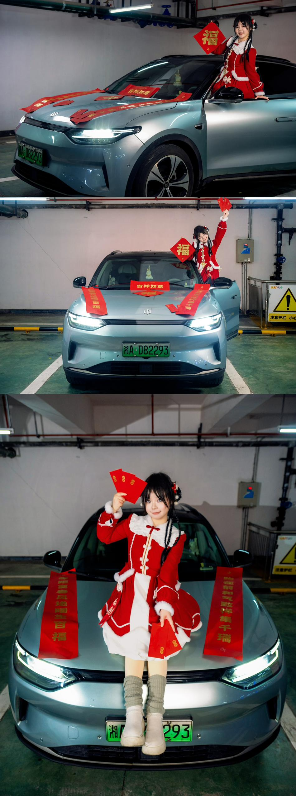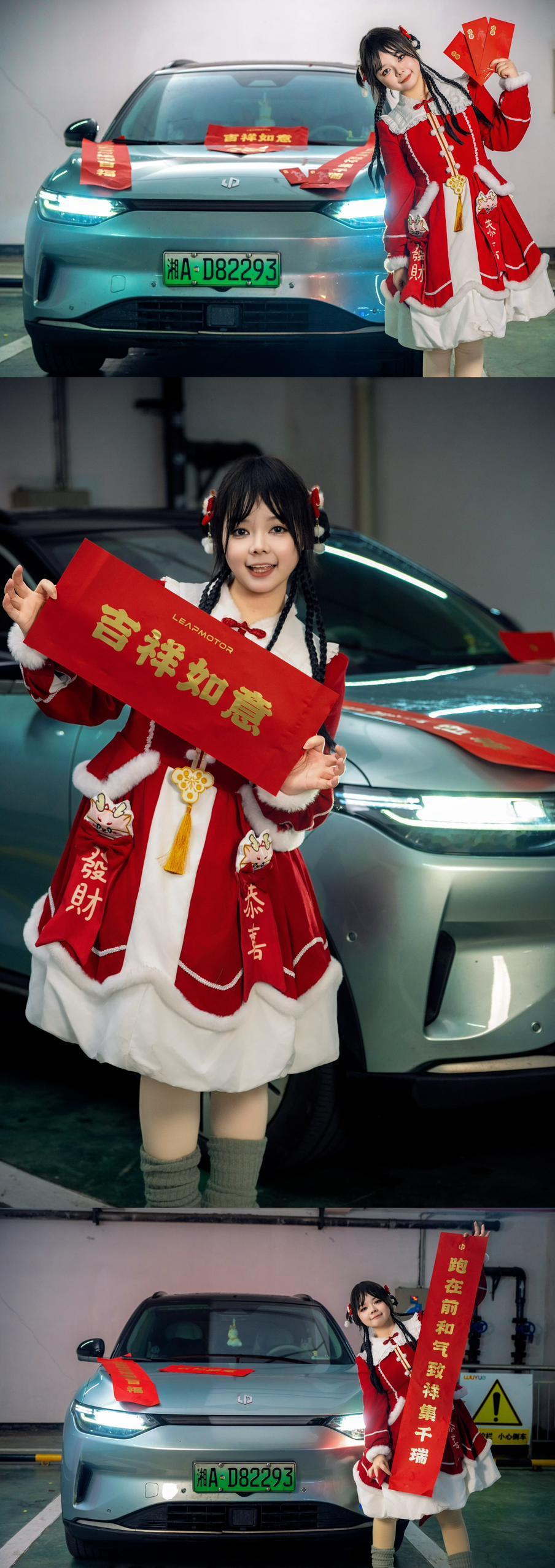 前段时间收到零跑新年礼盒,里面一整套春联、福字、红包全都配齐了! 马上就要过年,今天咪娅就手把手教大家,用官方礼包在停车场拍出年味超足的新年大片~ Q:为什么选停车场拍? A: • 灯光充足、场地大,人少拍照不尴尬 • 晚上也能拍,完全不用看天气 🧧 道具怎么用更出片 福字&红包:拿手上、放车头都超搭 春联:直接摆在车头当布景 小技巧:春联不服帖就车上撒点水,不留痕迹还能二次使用~ 📸 手把手教你摆姿势 1️⃣ 竖屏正面 站车旁手拿福字正对镜头,或手拿红包伸向镜头,超有延伸感 2️⃣ 侧景无边框门 打开车门站车内,手拿红包比个“射击”姿势,甜酷感拉满 也可以轻靠车身展示红包,松弛又自然 3️⃣ 车内特写 坐主驾拿红包,机位从上方45°拍,瘦脸又能展示穿搭 也可以三倍镜对准前挡玻璃,记得给脸部补光! 4️⃣ 车头正面合照 站车头前双手拿春联/红包,动作越大越有活人感 ✨ 停车场拍照必看重点 • 一定要带小补光灯! 停车场顶灯会把脸照得很黑,补光灯一打,皮肤立刻干净透亮 • 站在灯光柔和的位置,避开顶光阴影 • 手机微微低仰拍,车更大气,人也更显瘦 以上就是咪娅的新年拍照教程啦~ 简单接地气、不挑天气、停车场就能拍的新年照,你学会了吗~ 新的一年,祝各位零居一路平安、马到成功🐎财源滚滚来🥰 我是咪娅,我们下期再见喔👋🏻我的零跑生活 零跑年味大空间