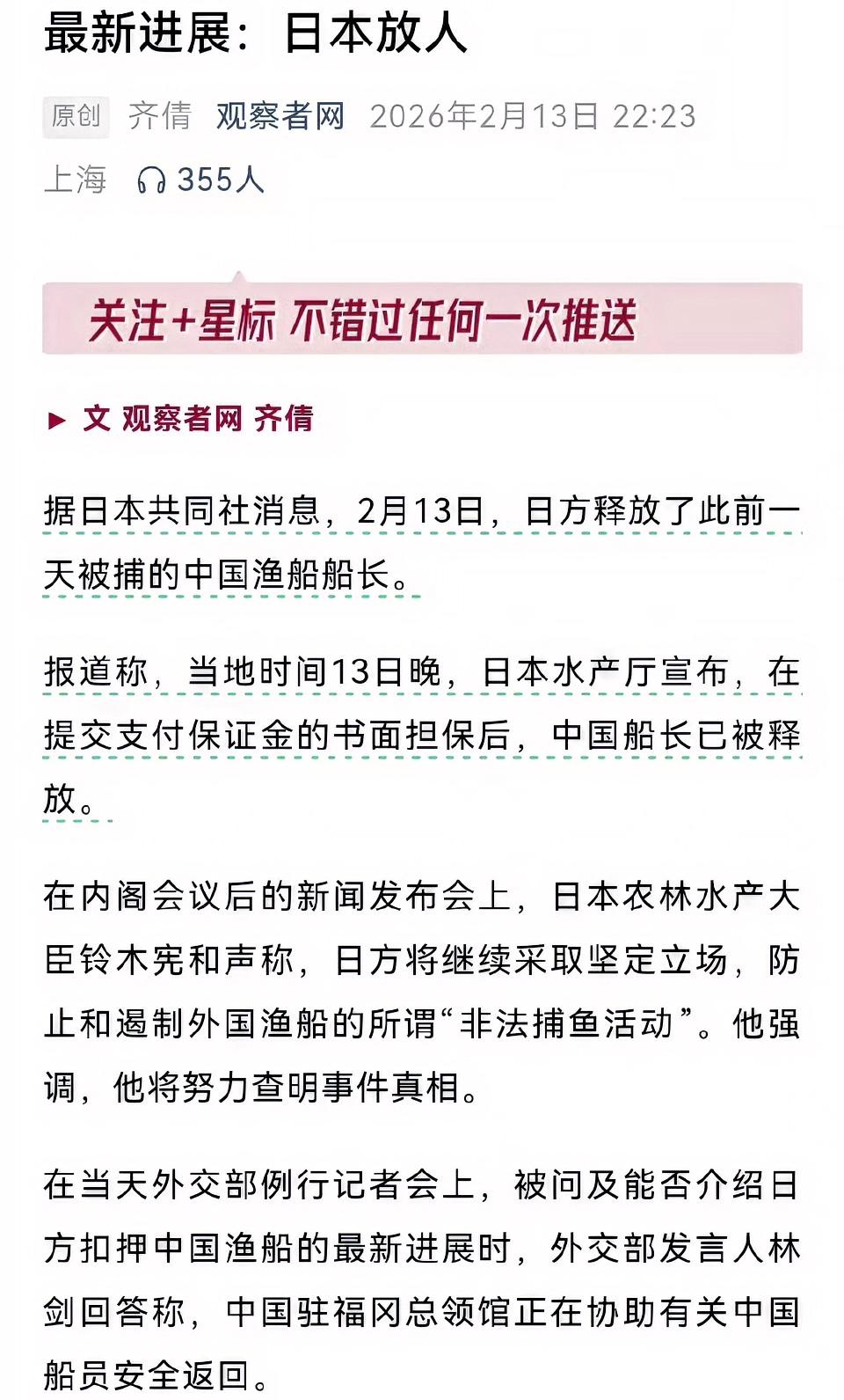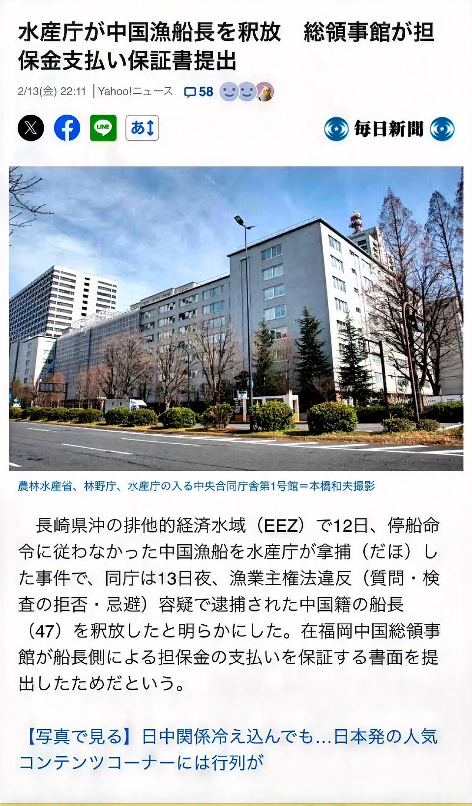 日本此番操作着实令人难以捉摸。2月12日,他们抓捕了中国渔船船长,然而次日便将其释放。据日本共同社消息,是在对方提交支付保证金的书面担保后予以放人。 在此次事件中,日方宣称该渔船在东海作业时拒绝检查,还出动4艘船对其进行围堵。实际上,日本并非首次如此行事。2010年,他们曾扣押中国渔船船长长达17天,致使中日关系陷入冷淡。2022年、2024年、2025年,也都有扣押中国渔船的情况发生。但此次有所不同,外交部发声,要求日方公正执法,保障中方船员权益,日本便迅速放人。看来,还是得施加些压力,他们才会守规矩啊。