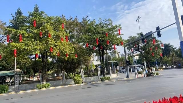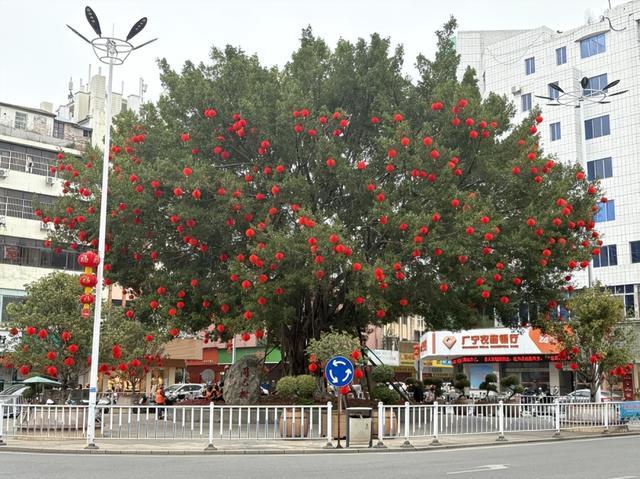 而广场内众多树木也挂上了红灯笼,