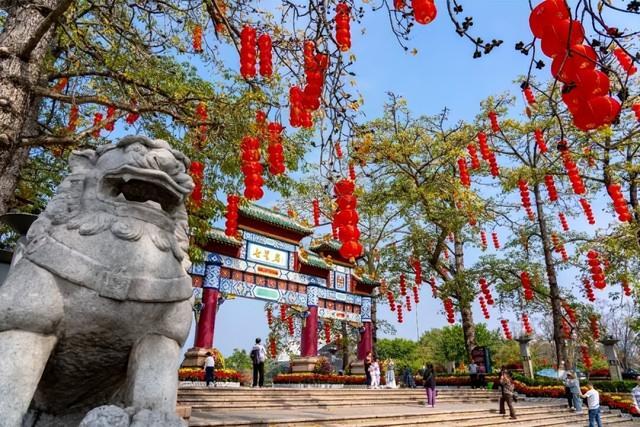 景区景点等重点区域悬挂了多组灯笼。