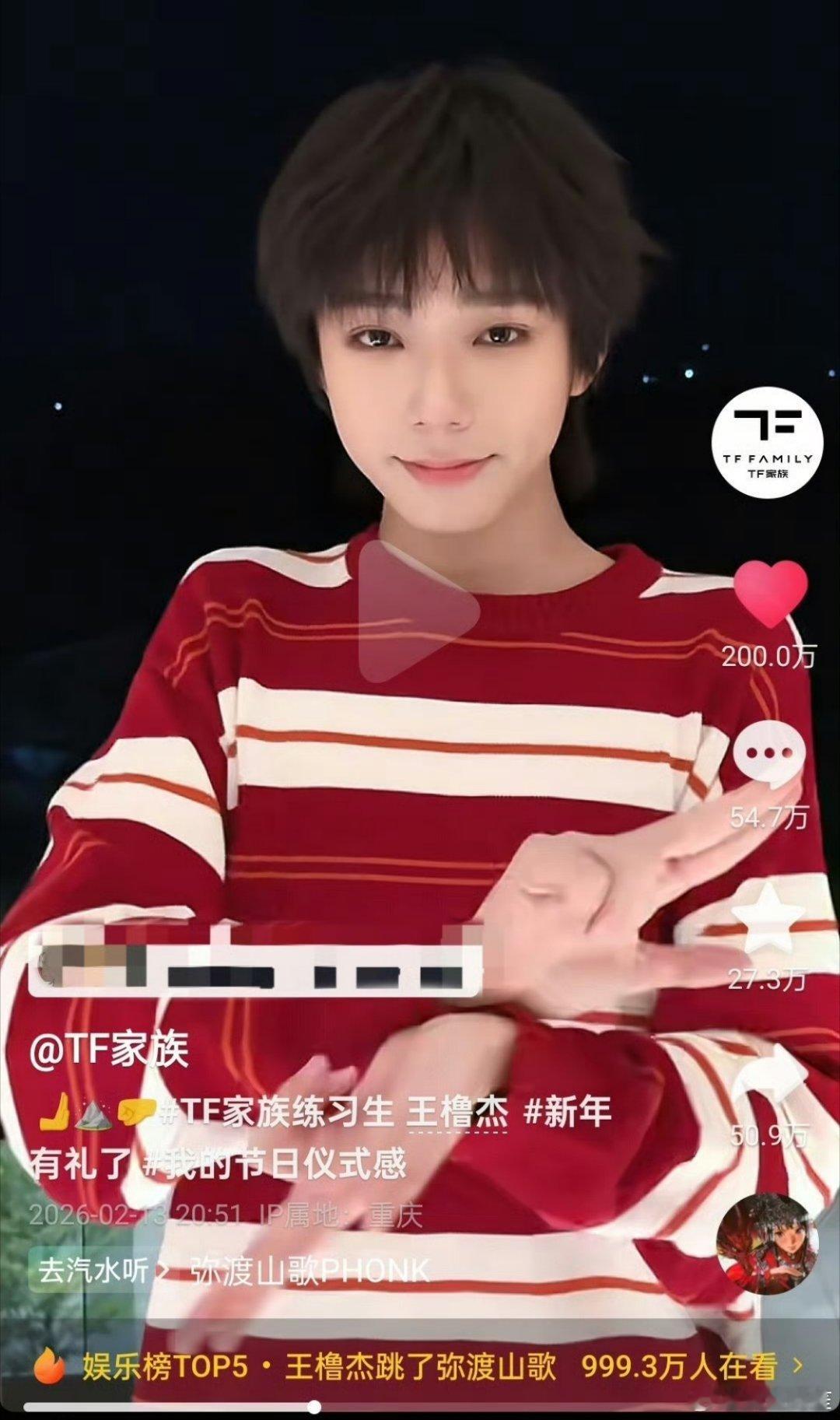 王橹杰昨晚的弥渡山歌cha点赞破200w了,1小时50分破百万,15h11min破200万,是目前时代峰峻点赞最快的🫘。王橹杰彝族血统发力了